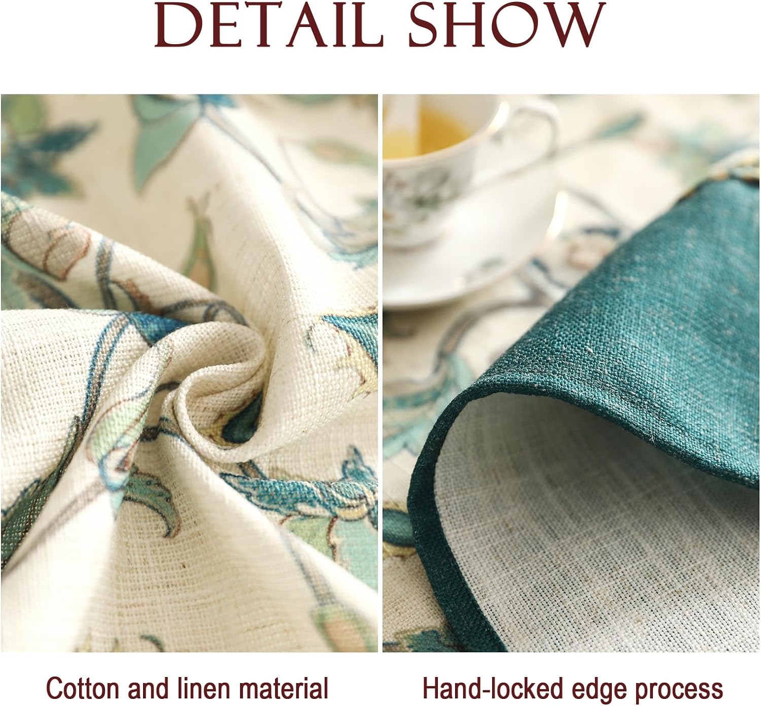 patdrea Designer Green Linen Extra Long Rectangle Tablecloth,Vintage Floral Pattern Breathable Table Cloth,Cover Decor for Kitchen Dining,Christmas,Thanksgiving,Holiday,Tea Party,63"x110"-Noah