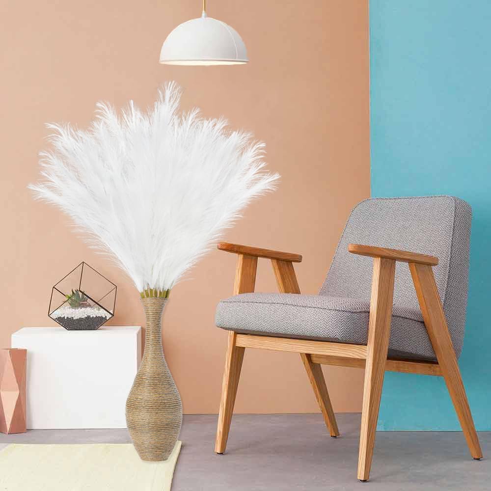 - White Pampas Grass Decor: You will get a pack of 8pcs artificial pampas grass, each stem 35β, and the heads of each stem is designed you can fluff them up for a fuller look, create a chic minimalist, or Bohemian modern display to complement your existing home arrangement