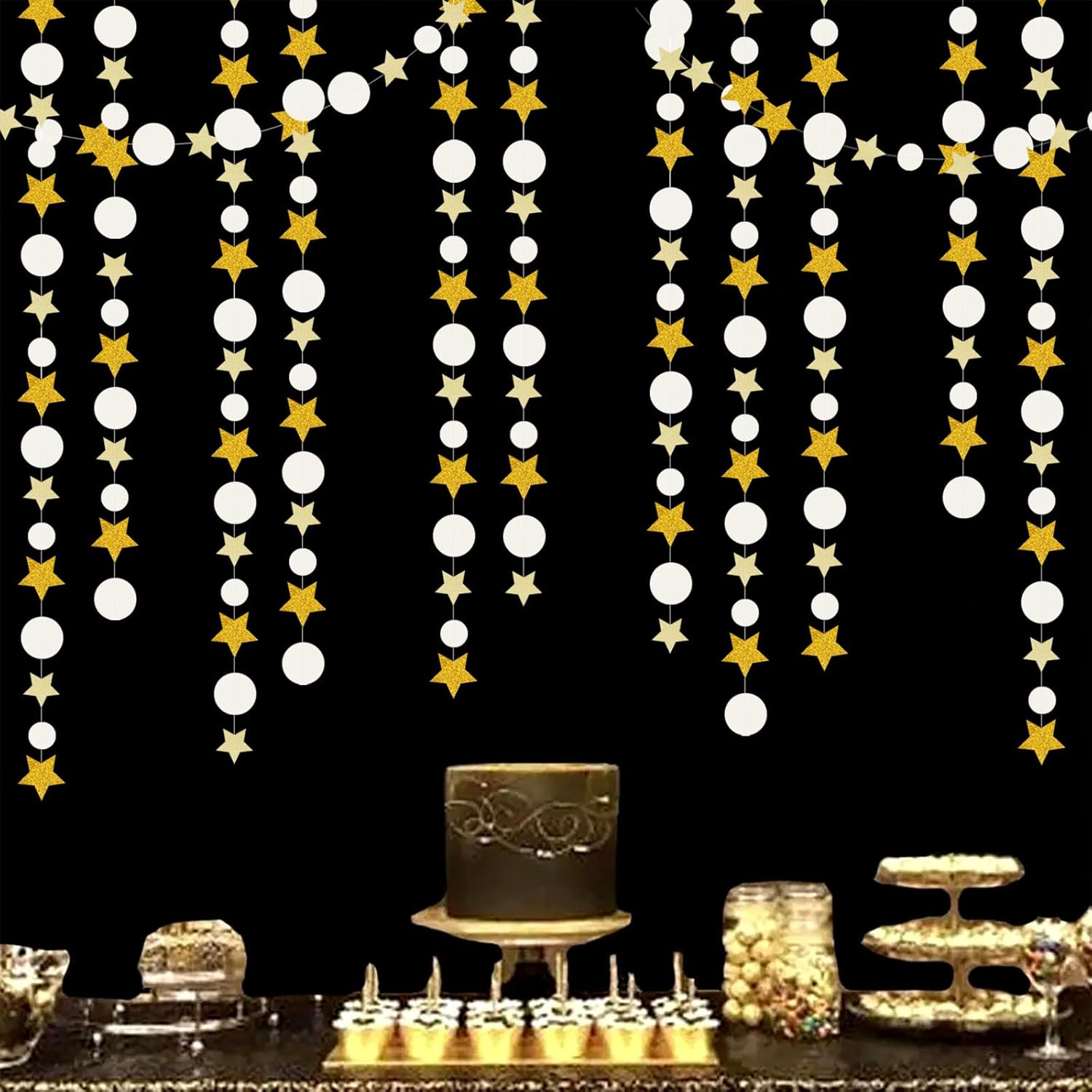 - 【Material】The material is eco-friendly gold,light gold,ivory paper.You can cut to any length you want if you need shorter length.The dots and stars are cut very neatly.