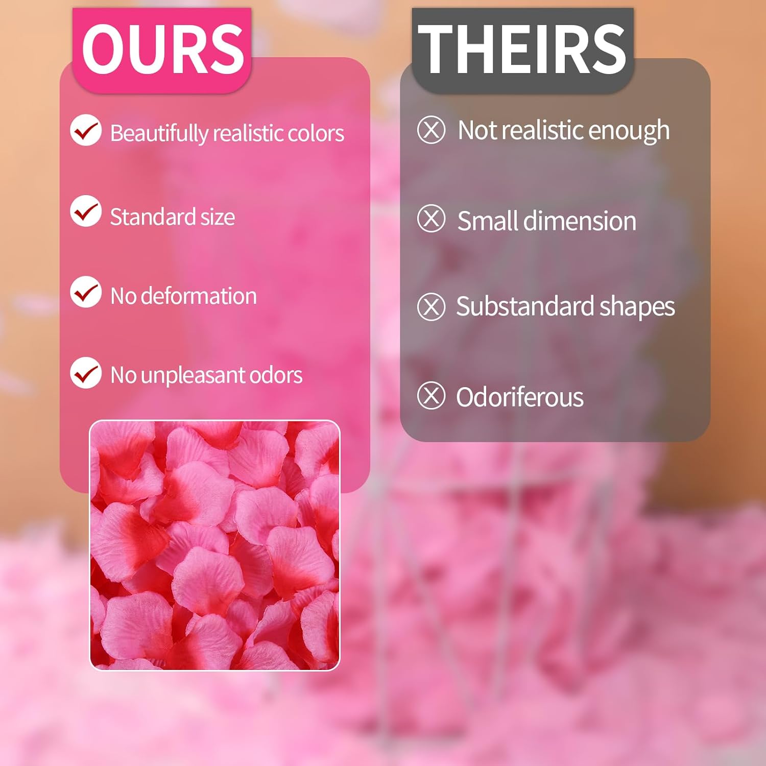 - ❤️【Rose Petals to Start Romance】❤️Our set of 1000 rose petals looks remarkably lifelike and will be the perfect accent for your important parties or wedding decorations. Feel the love and romance in crucial moments of life, whether it's kissing amidst falling petals or expressing love in a room filled with them!
