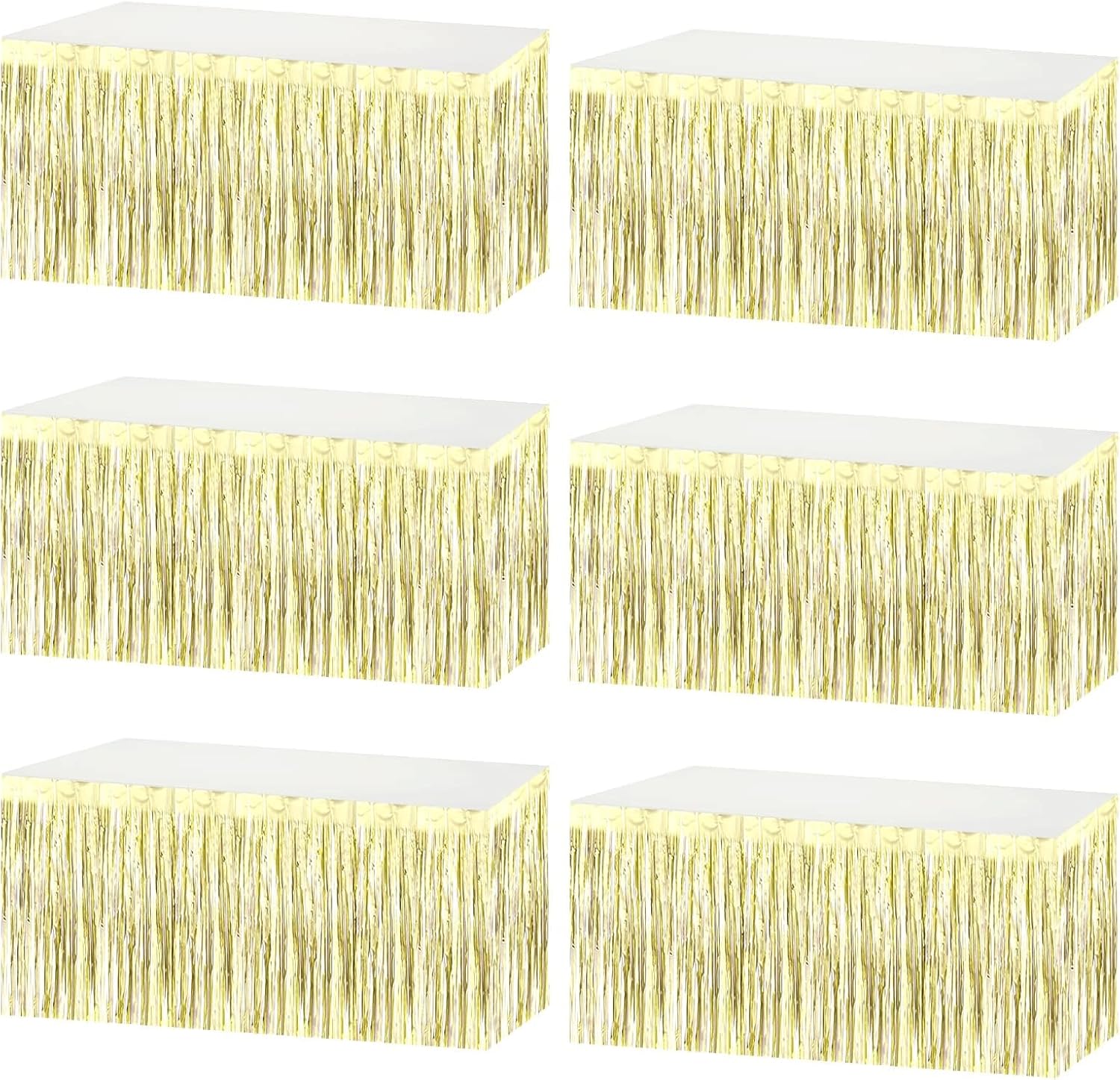 6 Pack 29x108 Inch Metallic Foil Fringe Tinsel Table Skirts Banner for Rectangle Tables Streamer Garland Backdrop for Wedding, Birthday, Parade Floats, Valentine's Day Party Decoration(Light Gold)