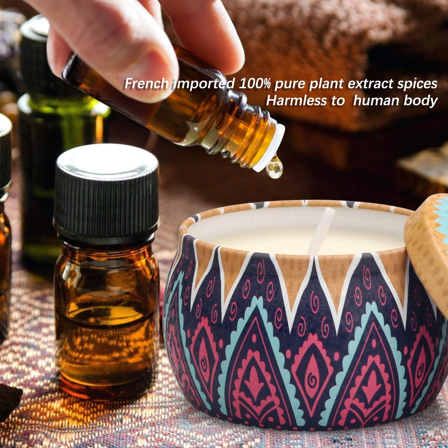 - Natural and Healthy: These candles are made from natural materials soy wax and essential oils, which burn cleaner than traditional paraffin wax, each 4.4OZ tin candle is designed to last, providing up to 35 hours of consistent, fragrant burn time. Enjoy a long-lasting aroma that fills your space with tranquility and peace.making them healthier for both people and the planet.
