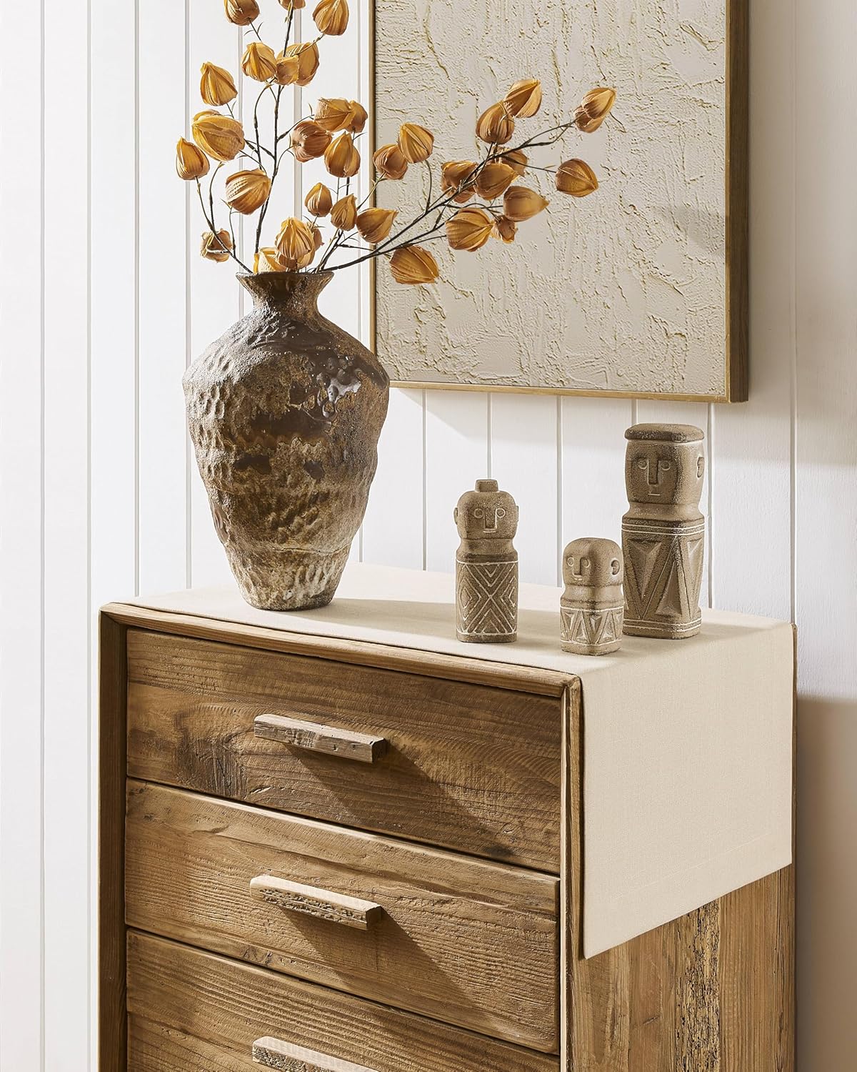 ZeeMart Linen Textured Border Table Runner, 14 x 60 Inch Cream, Farmhouse Style Cream Table Runners 60 Inches Long, Easy Care Everyday Polyester Table Runner