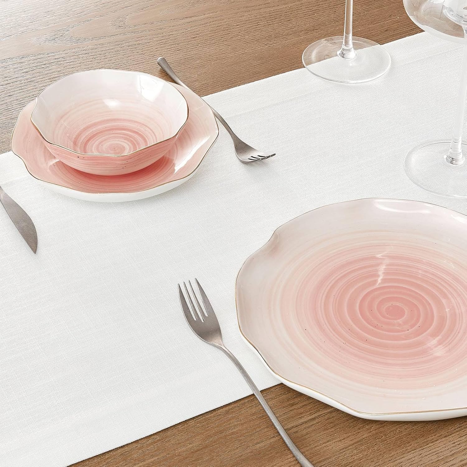 - Linen-textured border table runners, emphasize the natural rustic appearance of linen and soft cotton linen feeling. Hemmed edges & mitered corners design, can be decorated for any occasion. A variety of lengths and colors to suit all your needs.