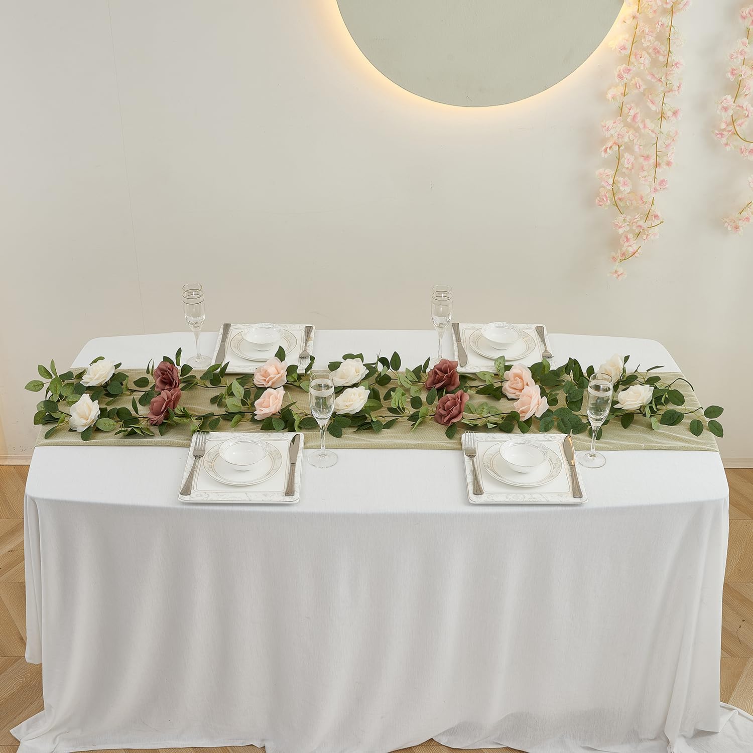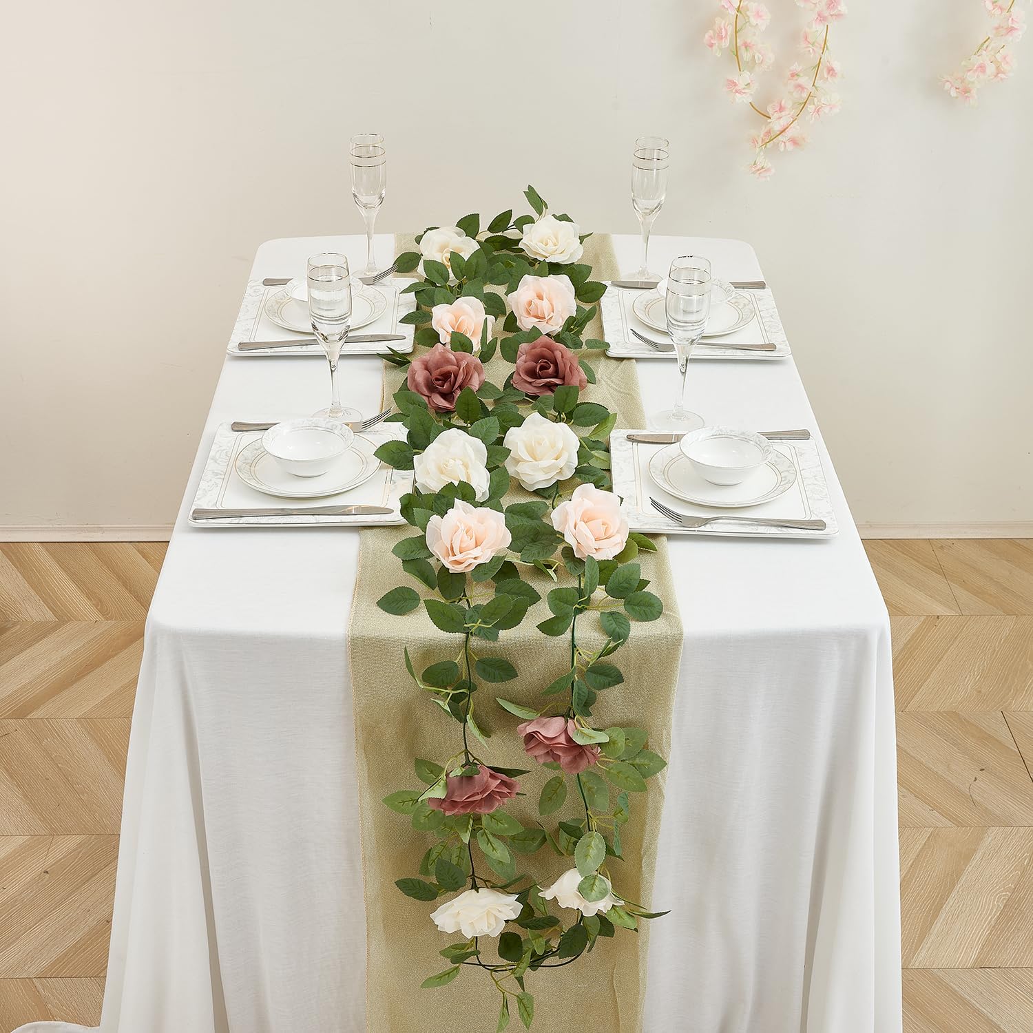 Artificial Rose Garlands Rose Vines Leaves Banners Hanging Floral Garland Fake Rose Flower Vine for Wedding Arch Ceremony Home Garden Outdoor Party Wall Decorations