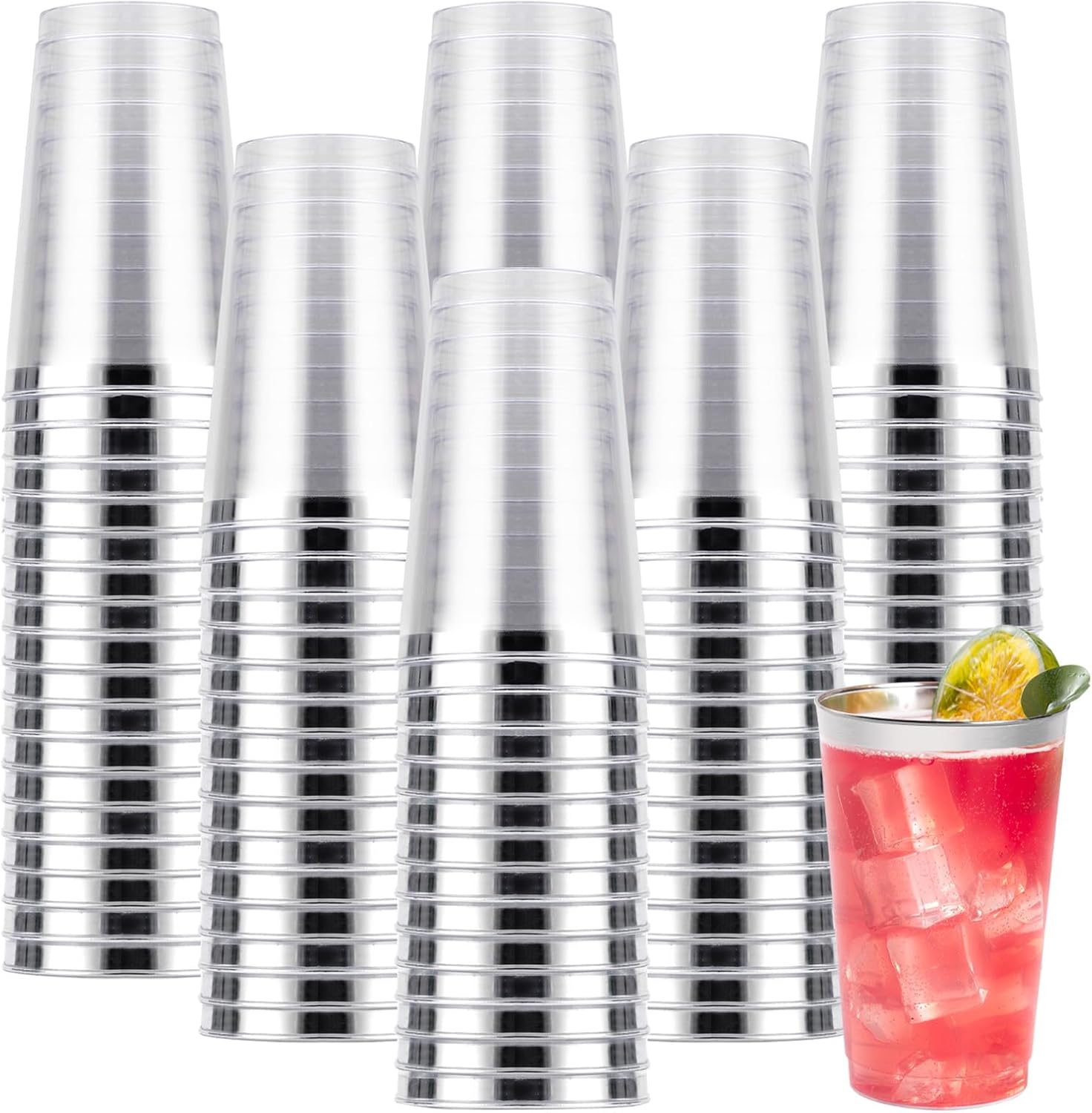 - What's You Get - Each package includes 200pcs 14oz silver plastic cups disposable, so you'll have plenty to go around. Please note that plastic cups are intended for room temperature or cold beverages only.