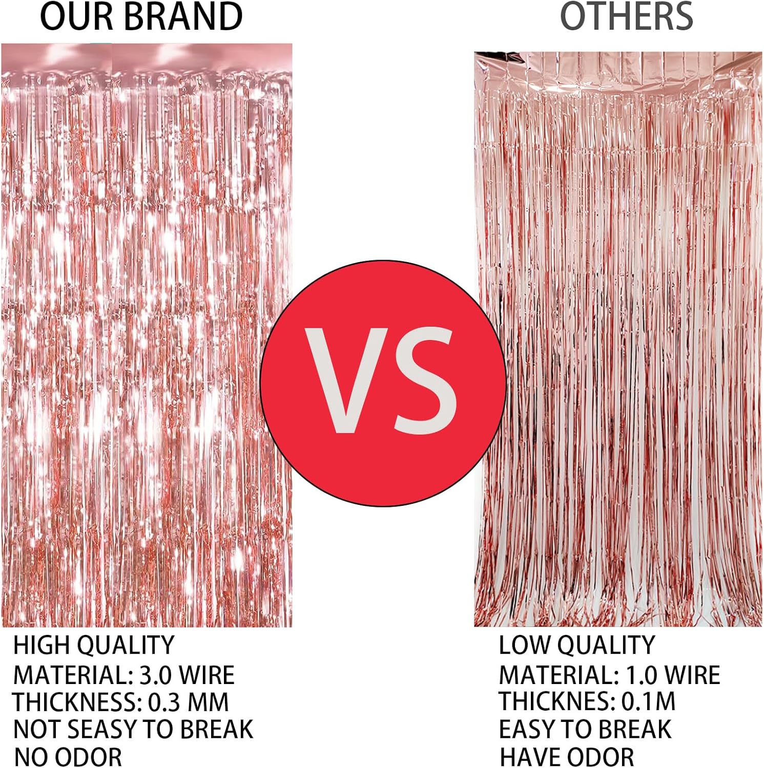- Reflective effect:Foil fringe curtains have a thickness of 0.4mm, making them thicker and less likely to wrinkle or crease, resulting in a durable and long-lasting decoration. Additionally, Keyali Foil fringe streamers are made of sturdy and flexible PET material, making them resistant to breaking or tearing.Metallic streamers come in a range of beautiful colours with a shiny, iridescent, and reflective surface that creates an eye-catching and mesmerising effect!