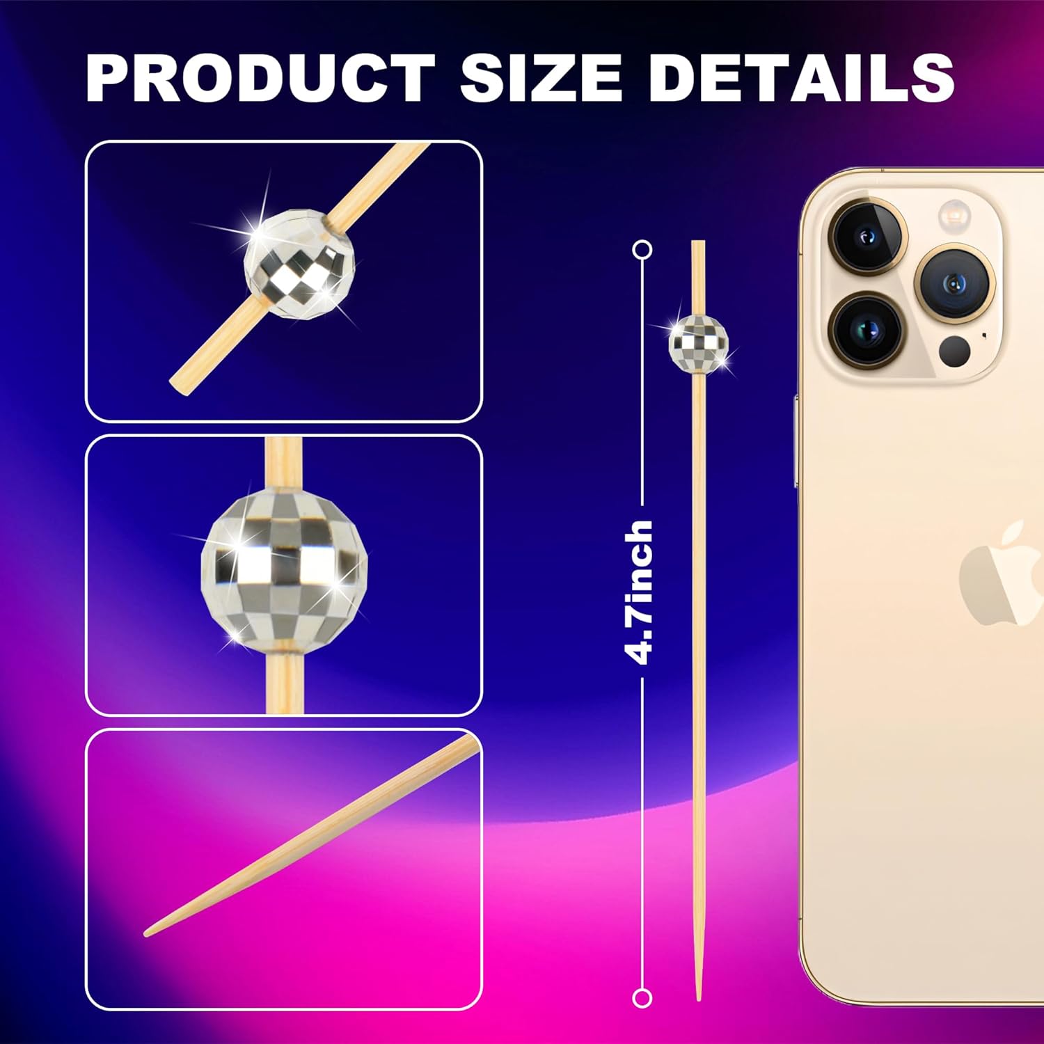 300 PCS Cocktail Picks Disco Ball Decor, Fancy Toothpicks for Appetizers, Bamboo Skewers for Appetizers,Drinks, Fruits, Disco Party Decorations. 4.7 Inch Long Silver Wooden Cocktail Sticks…