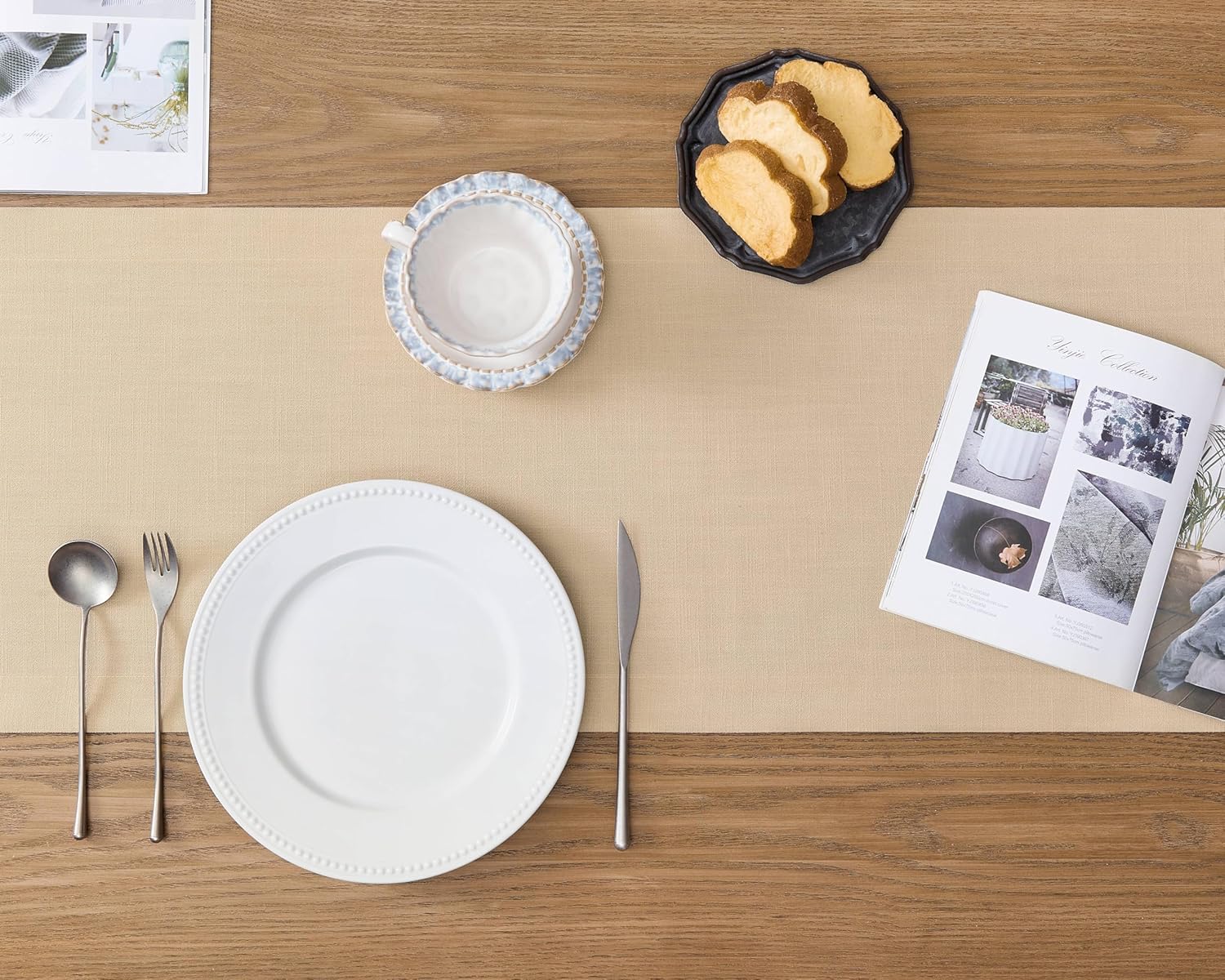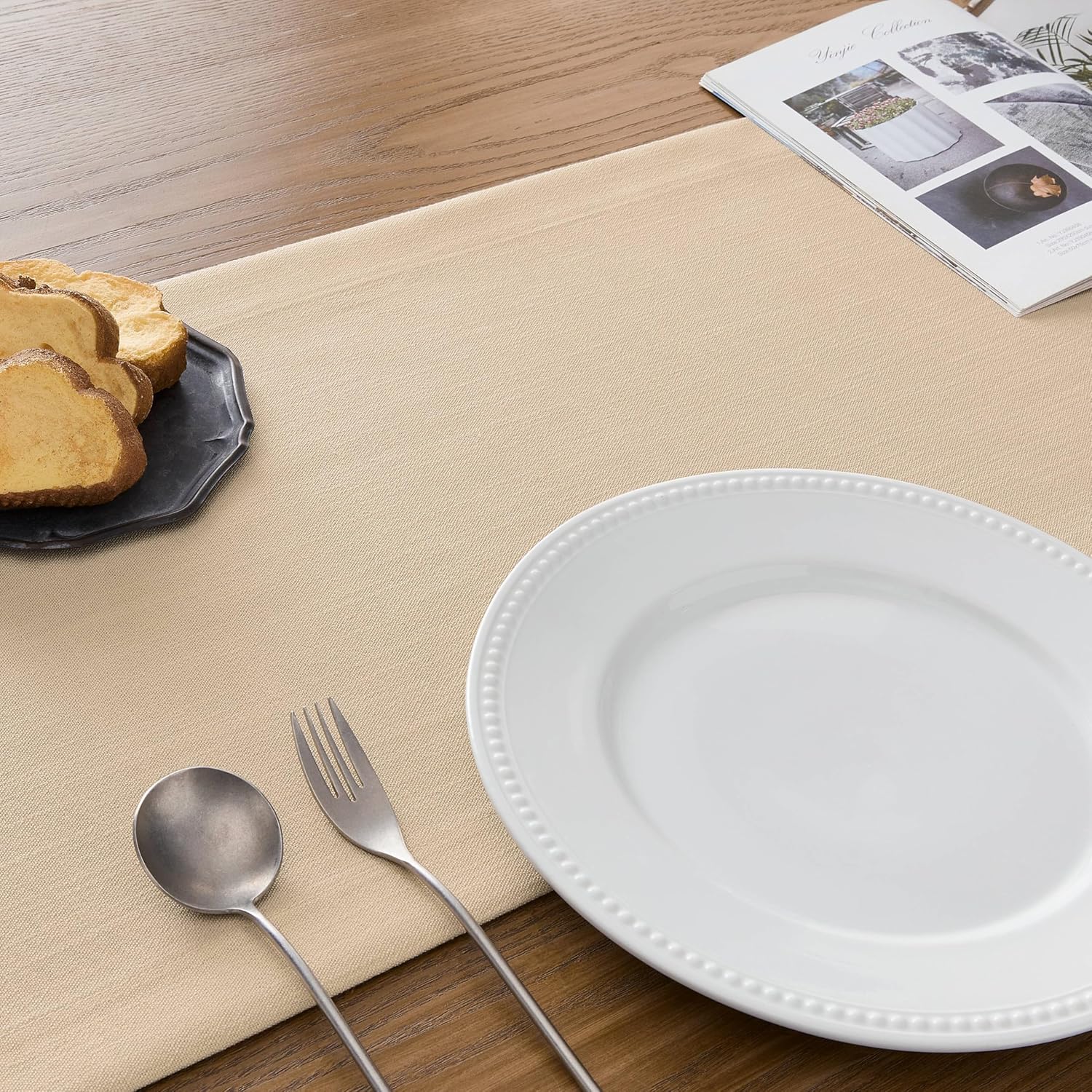 ZeeMart Linen Textured Border Table Runner, 14 x 108 Inch Oatmeal, Farmhouse Style Beige Table Runners 108 Inches Long, Easy Care Everyday Polyester Table Runner