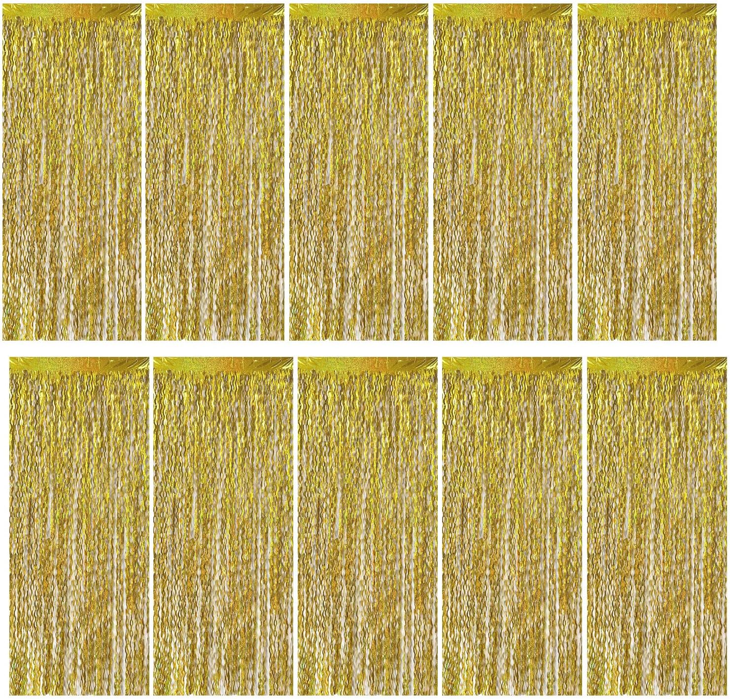 - Gold Backdrop :10 Pack, each curtains size is 3.28 ft x 6.56 ft, enough length foil fringe backdrops are perfect for the door, wall and table,feel free to cut to any length you want.