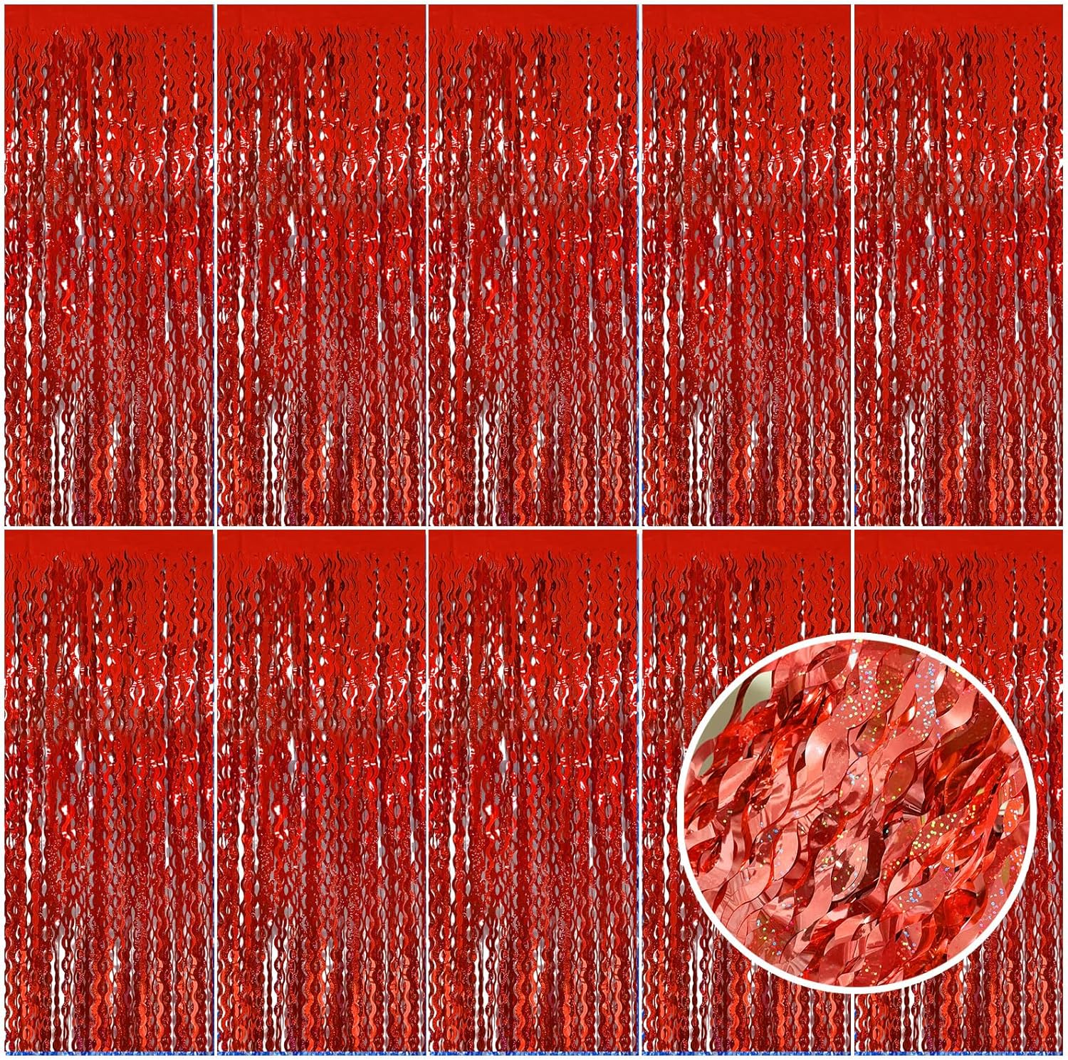- Valentines Day Backdrop:10 Pack, each curtains size is 3.28 ft x 6.56 ft, enough length foil fringe backdrops are perfect for the door, wall and table,feel free to cut to any length you want.