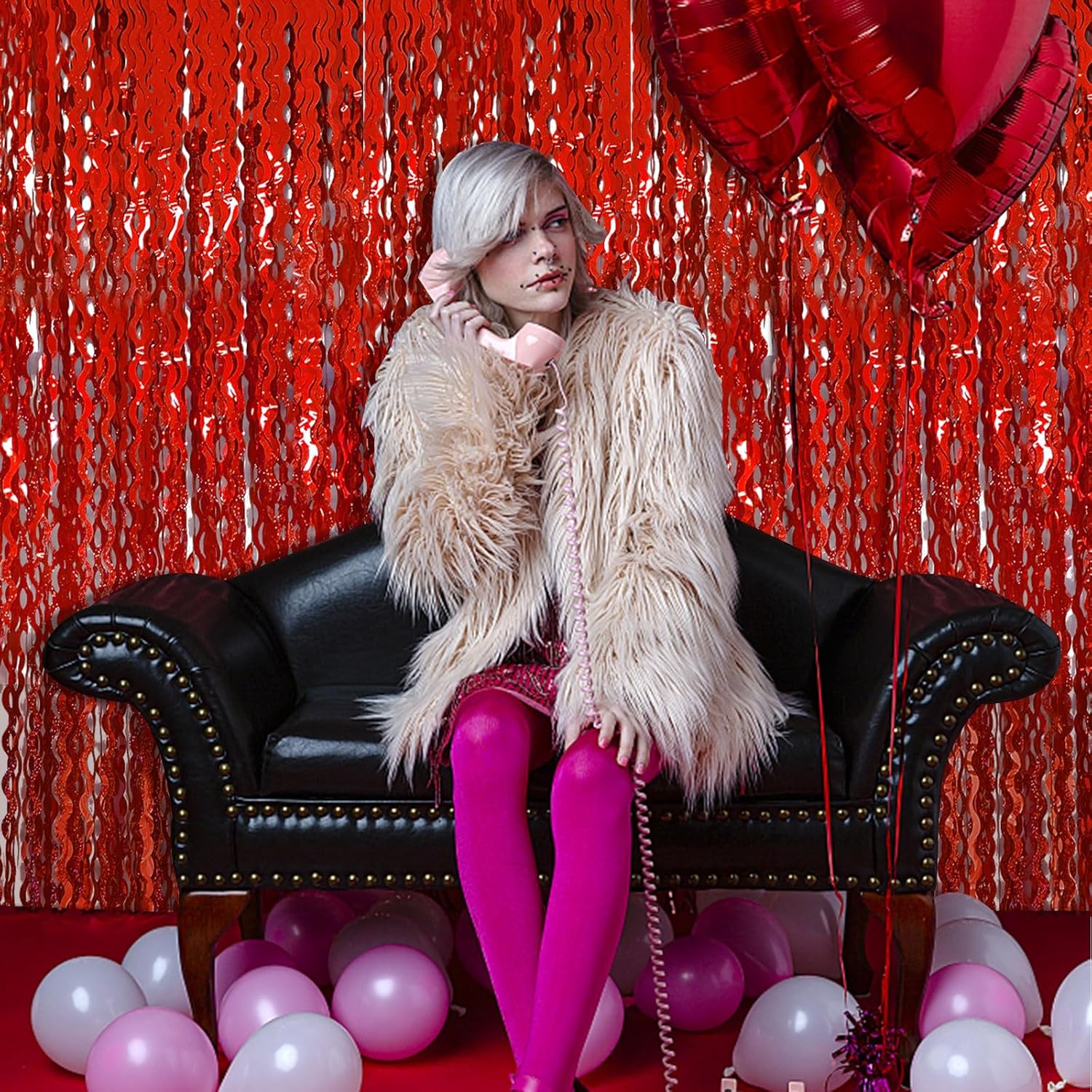 - Valentines Day Backdrop:2Pack, each curtains size is 3.28 ft x 6.56 ft, enough length foil fringe backdrops are perfect for the door, wall and table,feel free to cut to any length you want.