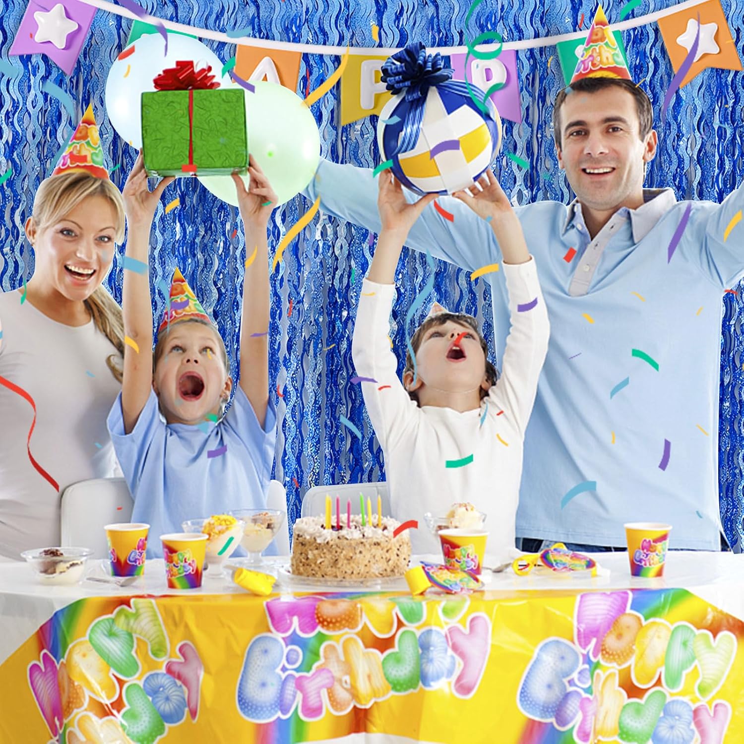 - Blue Birthday Decorations:2Pack, each curtains size is 3.28 ft x 6.56 ft, enough length foil fringe backdrops are perfect for the door, wall and table,feel free to cut to any length you want.