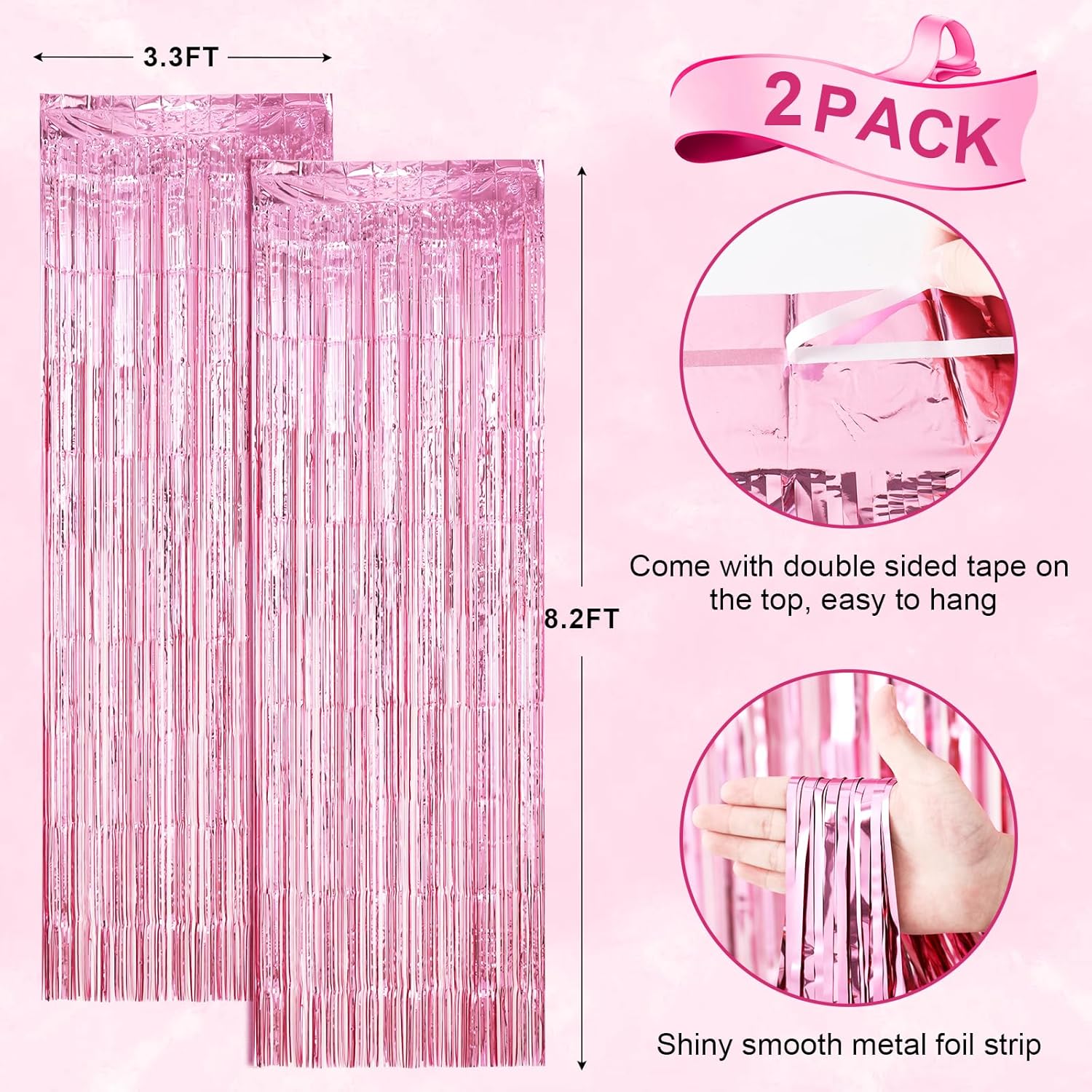 2 Pack Light Pink Foil Fringe Backdrop Curtains, Tinsel Streamers Birthday Party Decorations, Fringe Backdrop for Graduation, Baby Shower, Gender Reveal, Disco Party