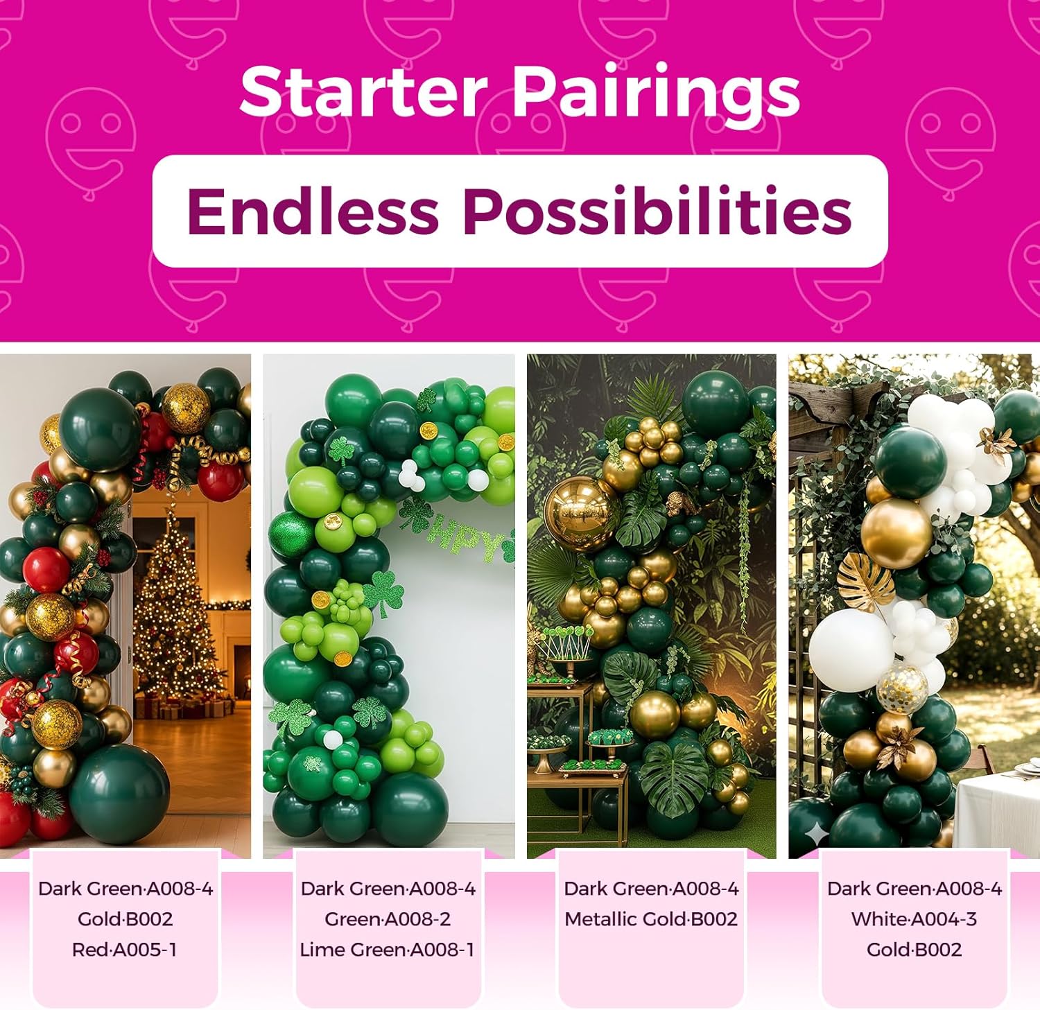 - ăGreen Themed Partyă- Dark green balloons can be used in green themed party or mix with any color to create a perfect green themed bridal shower, graduations party, birthday, Christmas, summer party,St. Patrick's Day,jungle party, and any themed party inside or outside, which makes your party more special.