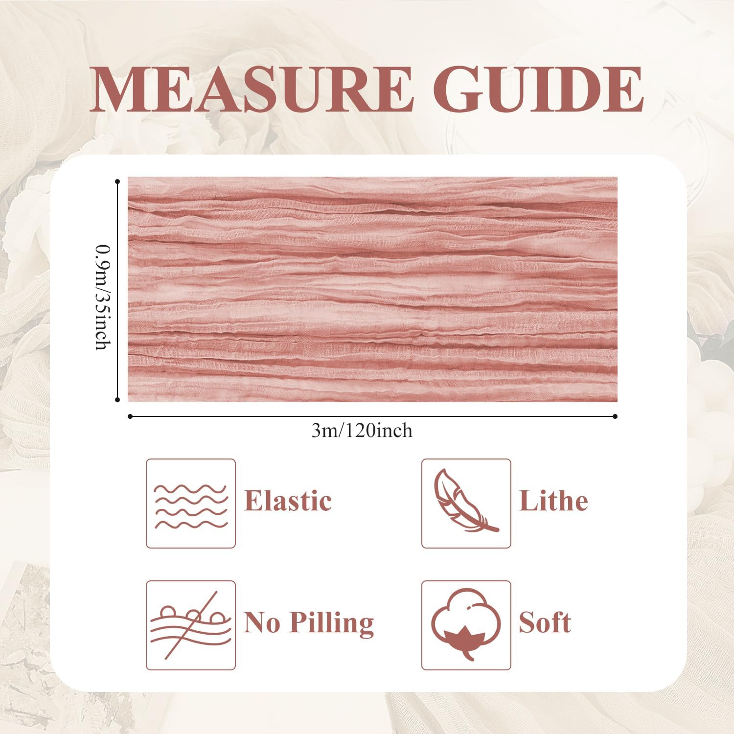 - 【Cheesecloth Table Runner】 Size: 35" W x 120" L. You will get 4 pieces 10FT length cheesecloth table runner. The sheer rustic table runner is long enough to span a large table and drape gracefully across the table. It will gently sway in the wind, adding a romantic atmosphere to your occasion. These eye-catching gauze table runners are ideal for arranging an elegant, stylish tablescape.
