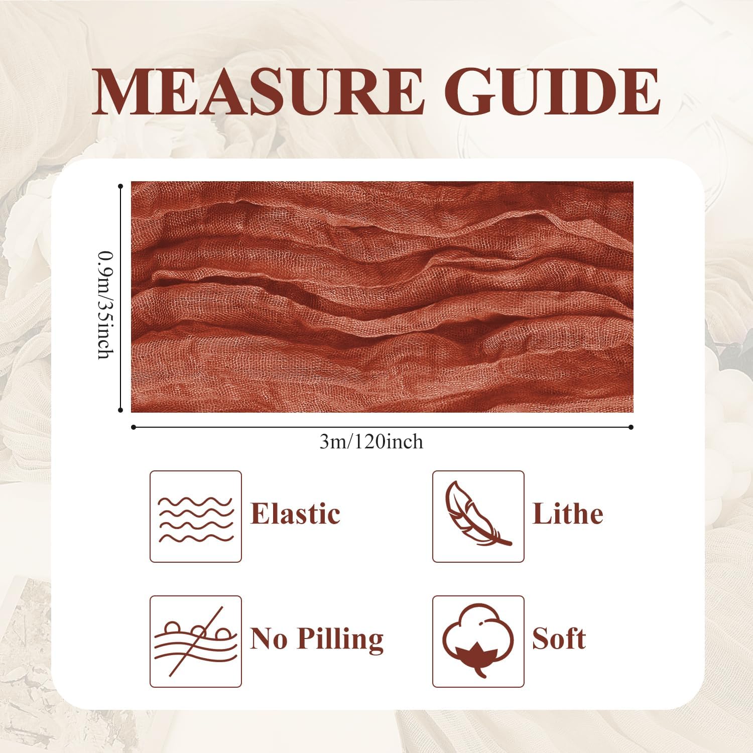 Asee'm 4pcs Cheesecloth Table Runner 120 Inches Long Terracotta Boho Gauze Cheese Cloth Runner 10FT Rustic Sheer Fall Table Runners for Thanksgiving Christmas Wedding Party Baby Shower Decoration