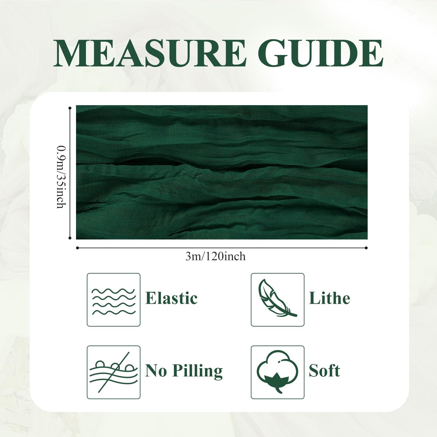 - 【Cheesecloth Table Runner】 Size: 35" W x 120" L. You will get 12 pieces 10FT length cheesecloth table runner. The sheer rustic table runner is long enough to span a large table and drape gracefully across the table. It will gently sway in the wind, adding a romantic atmosphere to your occasion. These eye-catching gauze table runners are ideal for arranging an elegant, stylish tablescape.