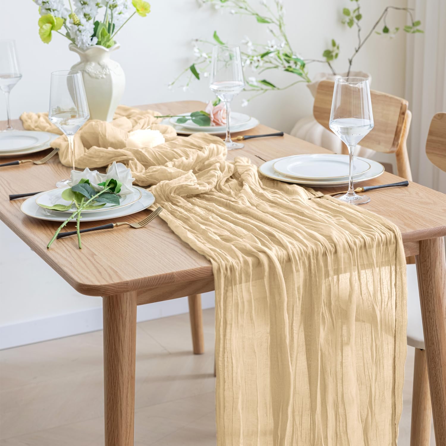 Asee'm 6pcs Cheesecloth Table Runner 120 Inches Long Sand Boho Gauze Cheese Cloth Runner 10FT Rustic Sheer Table Runners for Christmas Wedding Party Baby Shower Spring Easter Decoration