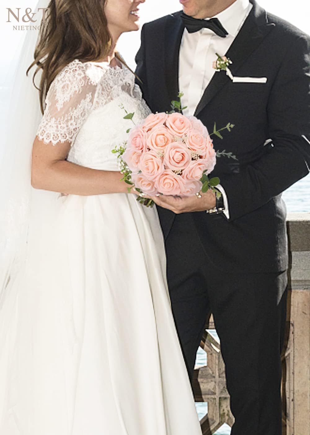 N&T NIETING Artificial Flowers, 50Pcs Fake Flowers Roses Perfect for DIY Wedding Bouquets Centerpieces Bridal Shower Party Home Flower Arrangement Decorations, Blush