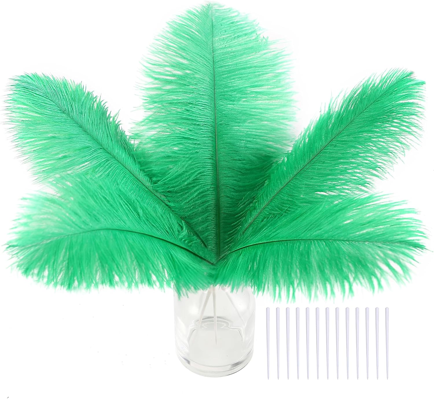 - Creative Ostrich Feathers Set: 30 pcs green ostrich feathers bulk 6-8 inches, 30 pcs small white sticks 3 inches long. Ostrich feathers kit total length can be up to 9-11 inches