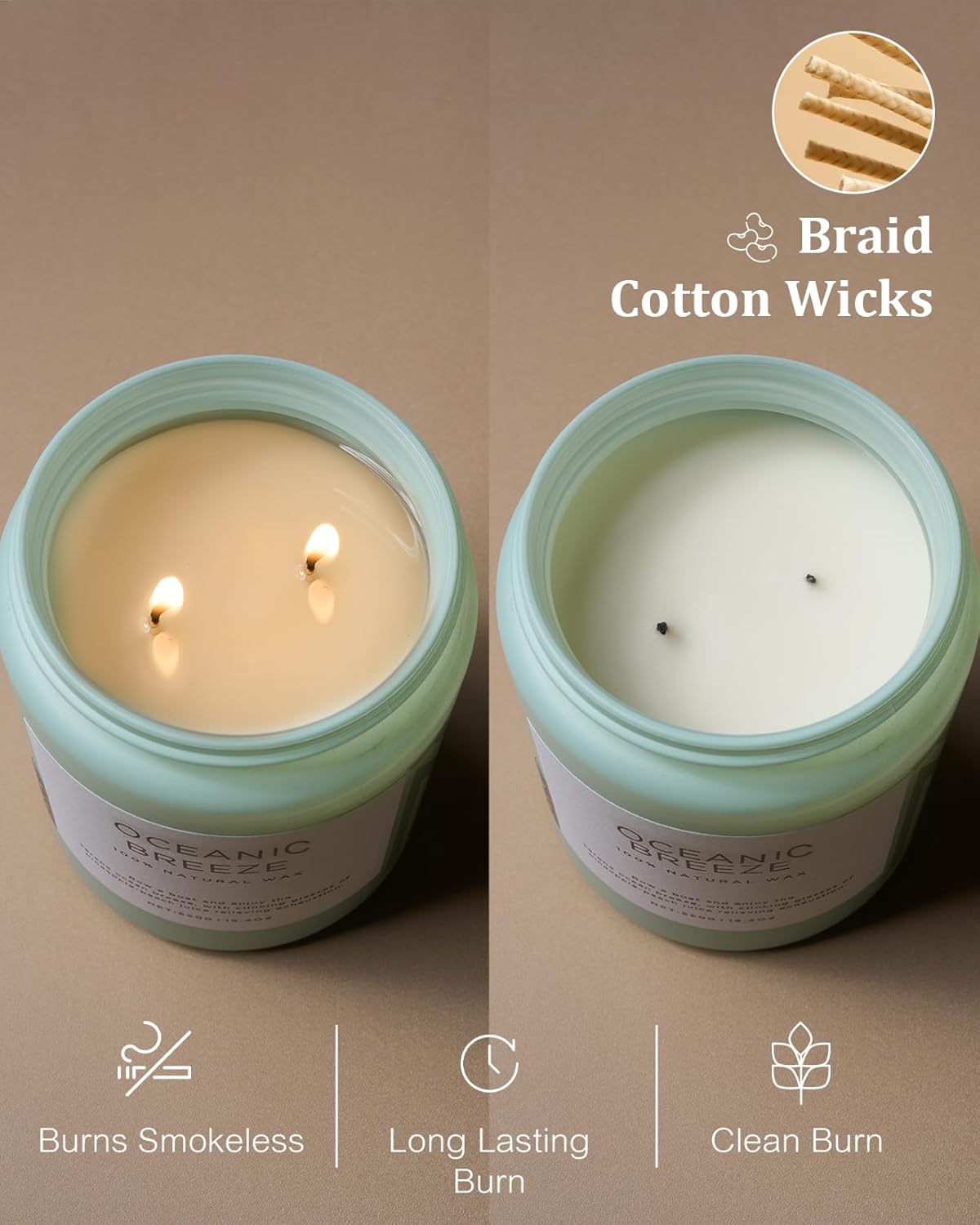 M&SENSE Candle Oceanic Breeze Scented, 19.4oz 110 Hour Long Lasting 2 Wick Pineapple & Mango Scent Natural Soy Candles for Home Scented for Stress Relief & Women/Men