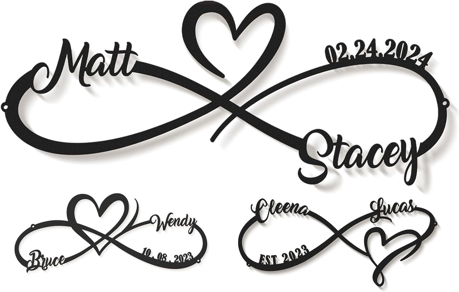 Personalized Anniversary Wedding Gifts for Couples 2025, Customized Metal Infinity Signs with Names & Date, Love Heart Unique Wall Art for Newlyweds Valentines