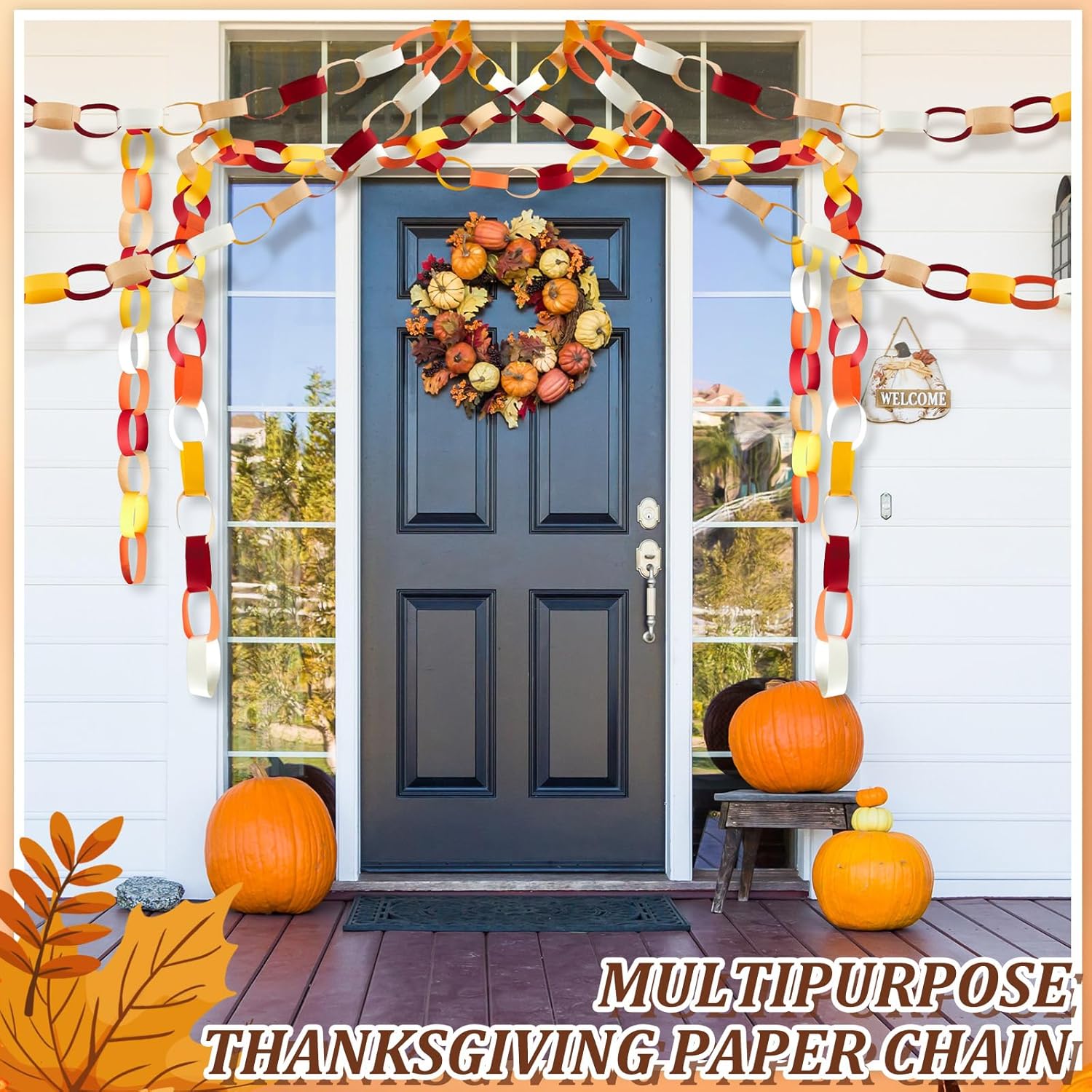 Lincia 600 Sheet Halloween Paper Chain Garland, Construction DIY Crafts Chain Strip for Fall Thanksgiving Party Decor, 1x8 Inch with Double Sided Tape (Thanksgiving)
