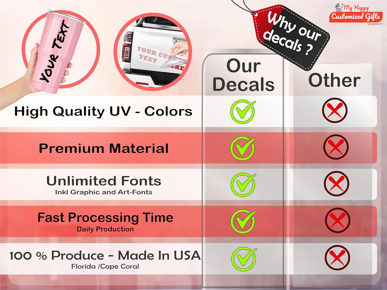 - SPECIAL UV-RESISTANT CUSTOM DECAL OR STRONG MAGNET — Our Customized Stickers or Magnets are prepared with SpecialUV-resistant ink.All Decals and Magnets are waterproof.