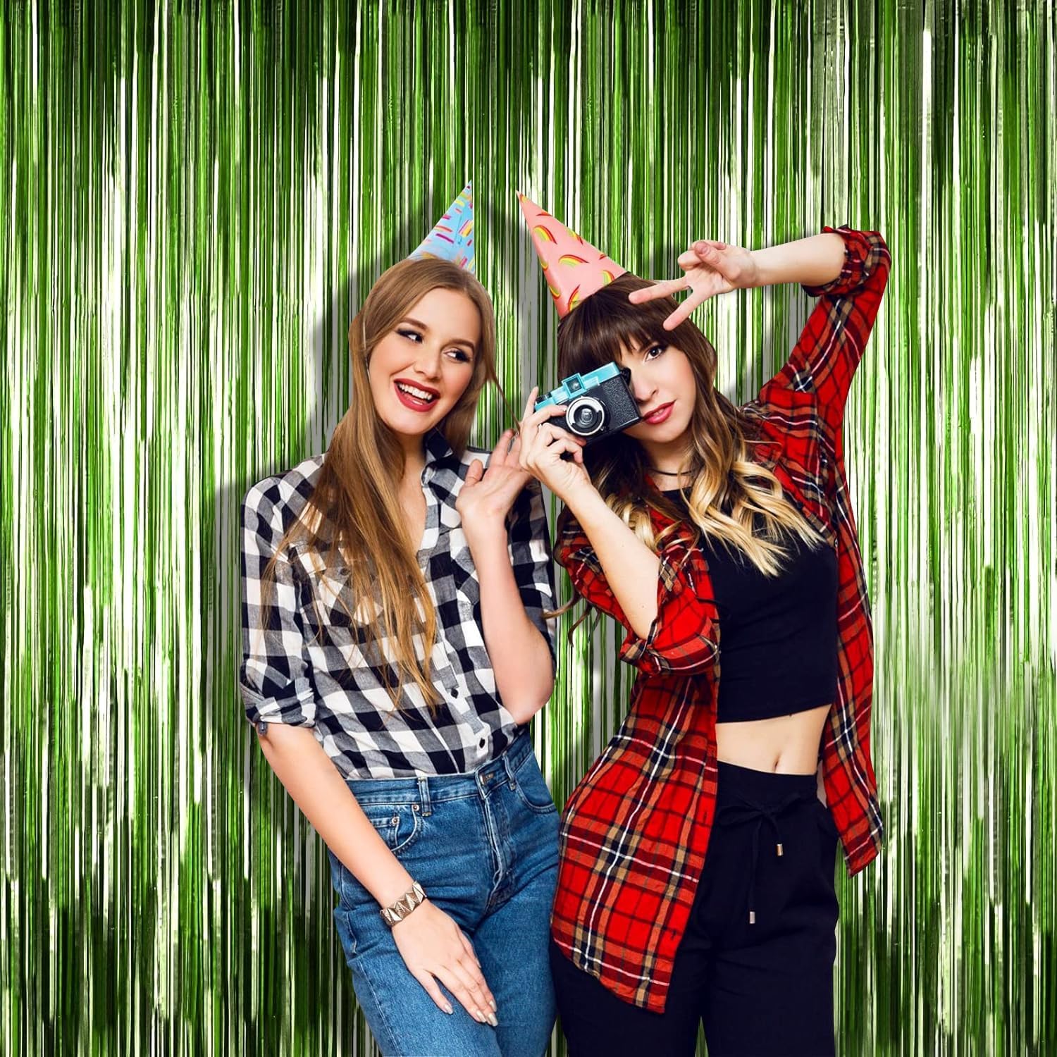 - Easy to Install: made of metallic foil lightweight, Each foil fringe curtain has double-sided tape on the back, table skirts are equipped with an adhesive strip on the top, easy to use. you just need to tear off the tape and install the backdrop on the wall, door, window, etc. It can be reused many times, great for your party venue decoration.