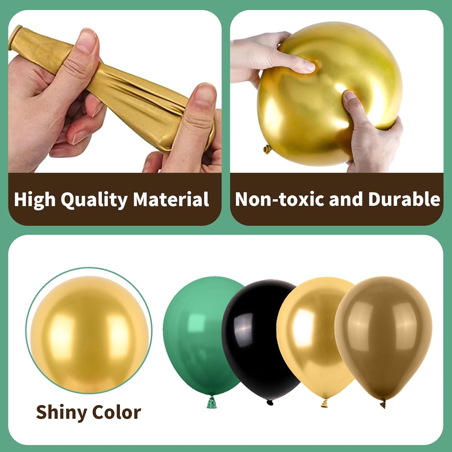 - 【Nice Party Decorations】: Infuse your gathering with warmth and joy with our lovely green black gold balloons. Whether gracing tables as exquisite centerpieces or strategically scattered throughout the venue, these colorful balloons serve as the good embellishment, creating unforgettable moments of laughter and connection with loved ones.