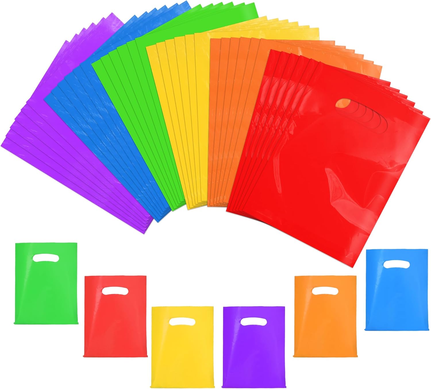 - 【6 Bright Color】Value Pack including 6 bright colors: blue, yellow, green, red, and orange. Each color 6 PCS, totally 36 small gift bags. VieFantaisie plastic party favor bags have enough colors for various occasions and will surely leave a vivid impression.