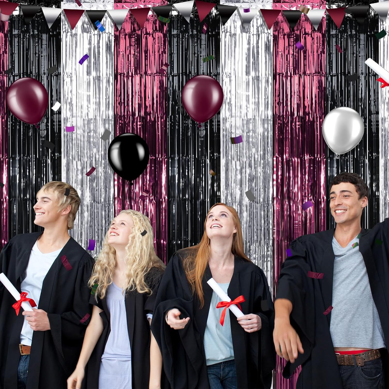 - What’s Inside: Included in the package are 3 maroon black and silver fringe curtains, each measuring 3.3 x 6.6 ft, making them suitable for decorating most scenes. Perfect for graduation parties, these curtain backdrops will add a pop of color to your gathering and help evoke fond memories.