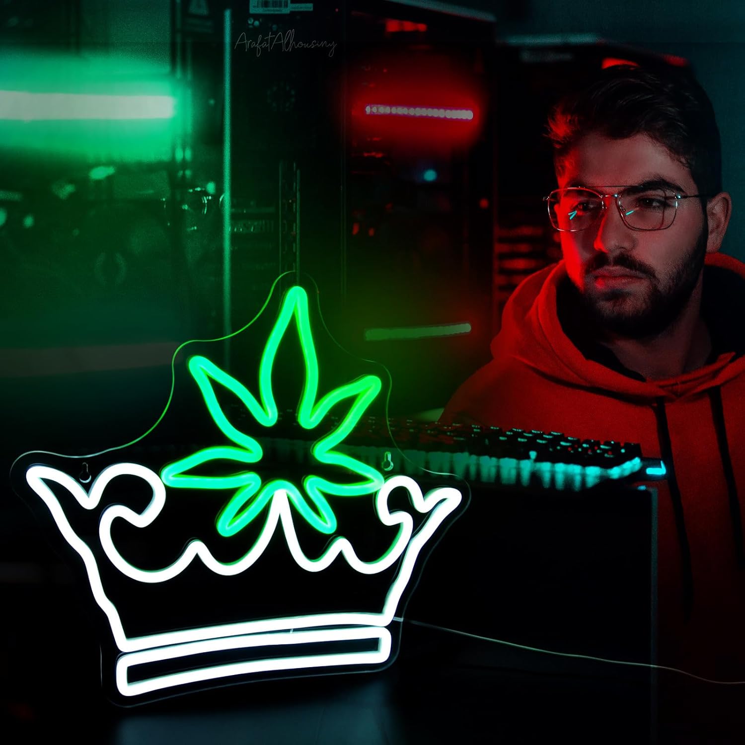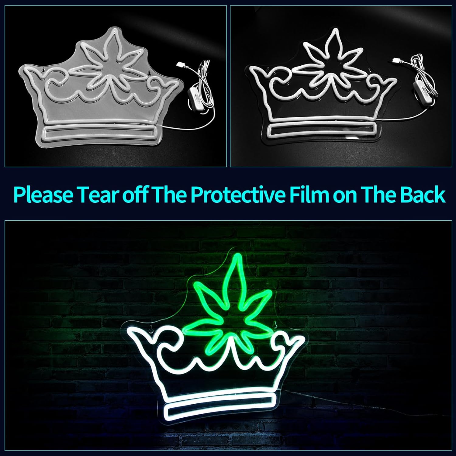 Leaf Crown Neon Signs for Wall Decor Green White LED Neon Sign for Room Neon Light Sign for Wall Decor Birthday Party USB Powered