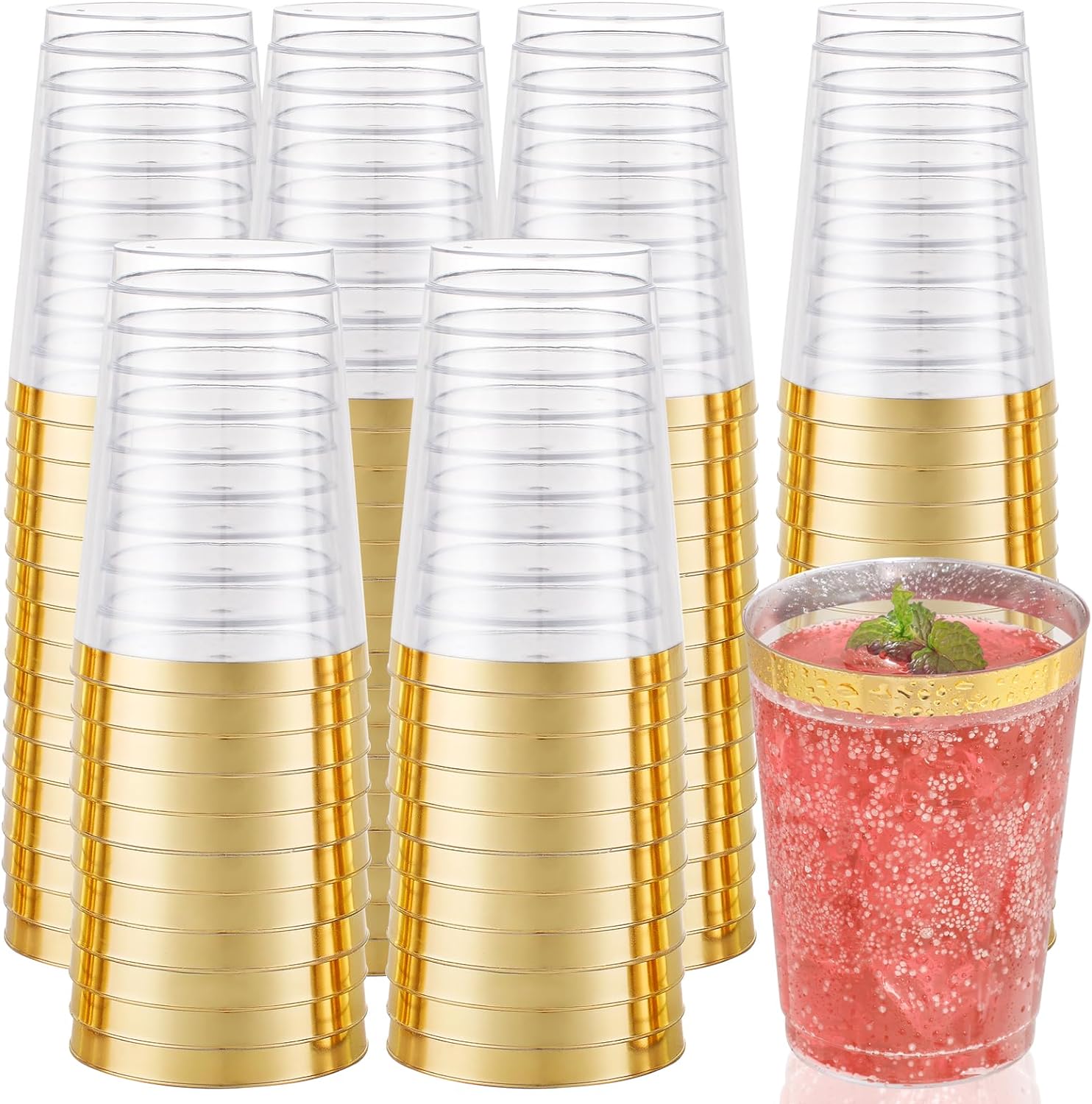 - Elegant Appearance: The 12 oz disposable clear plastic cups with gold trim are crystal clear all over, presenting a high-end appearance for a good clear visibility. The gold appearance and luster make these gold disposable cups look more upscale in any setting.