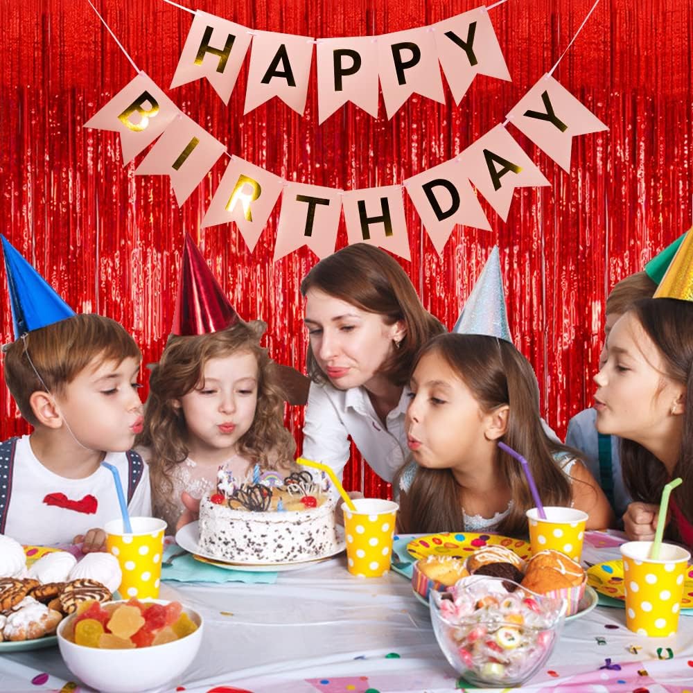 5 Pack Foil Curtain Backdrop Red Metallic Tinsel Foil Fringe Curtains Photo Booth Props for Birthday Wedding Engagement Baby Shower Bachelorette Christmas Holiday Celebration Party Decorations