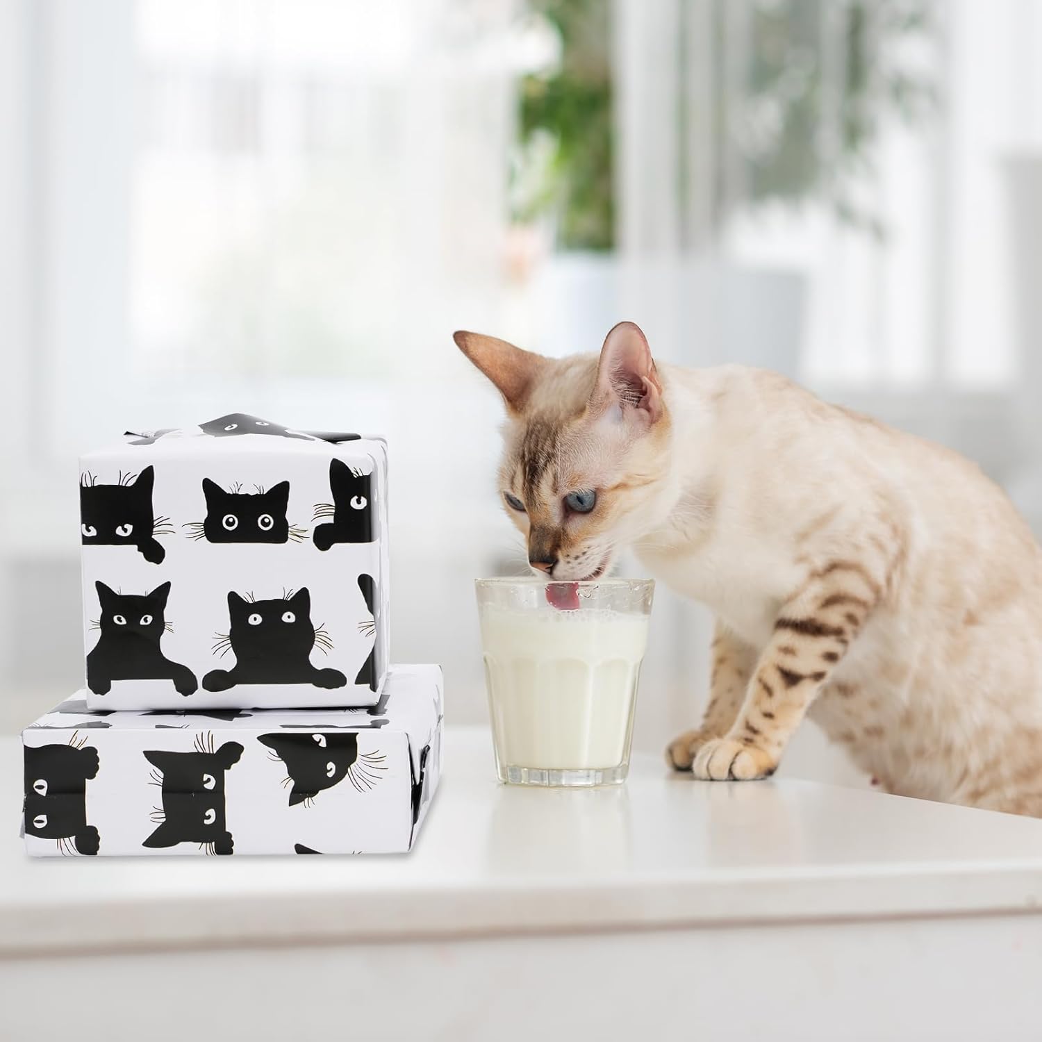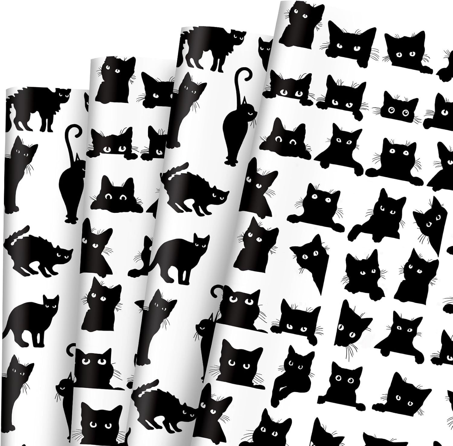 - CAT DESIGN: Our wrapping paper adopts cartoon design with various black cats, cute and delicate, will nicely increase the fun atmosphere, great for gift wrapping.