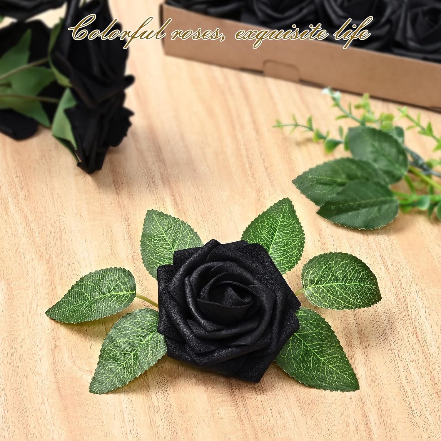 - Kindle Your Creative Flames: The box includes 16 black roses (3" flower head, 8" stem) and 4 green rose leaves, perfect for an array of DIY crafts. Whether creating wedding bouquets, graduation or birthday party ornaments, baby shower decorations, or cake adornments, our faux roses add a touch of class to every important moment.