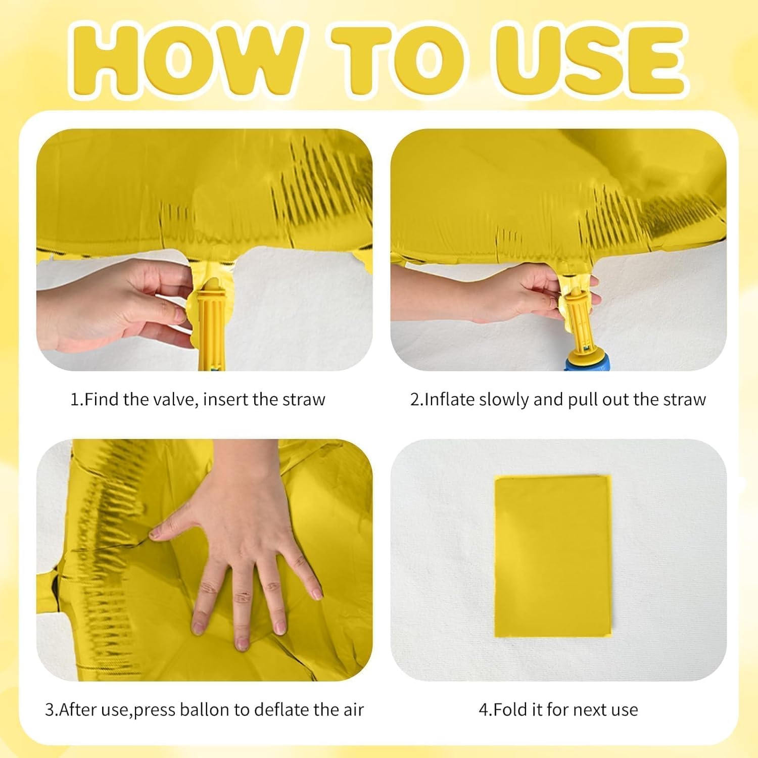 - Easy To Use:These gold heart foil balloons are suitable for helium or air. Easy to inflate using the a straw or an air handheld pump. This heart foil balloon adopts self-sealing design, you only need to press the inflation port to seal it after finishing inflate. The balloons are reusable and can be folded up for next use after being deflated with a straw.