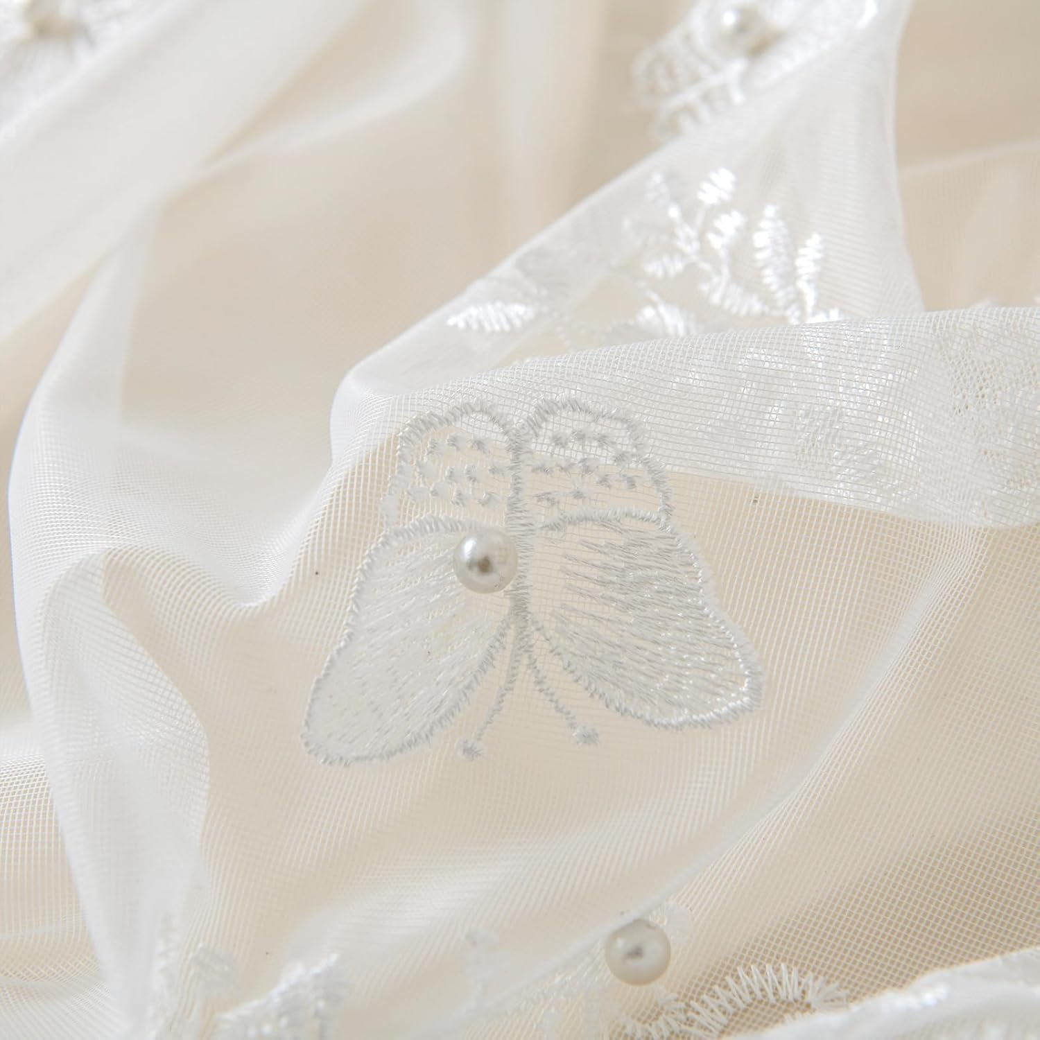 VISIONTEX White Sheer Voile Curtains, Decorative White Embossed Butterflies Rod Pocket Window Drapes for Home Kitchen, Living Room and Bedroom 54 x 63 Inch, Set of 2 Curtain Panels