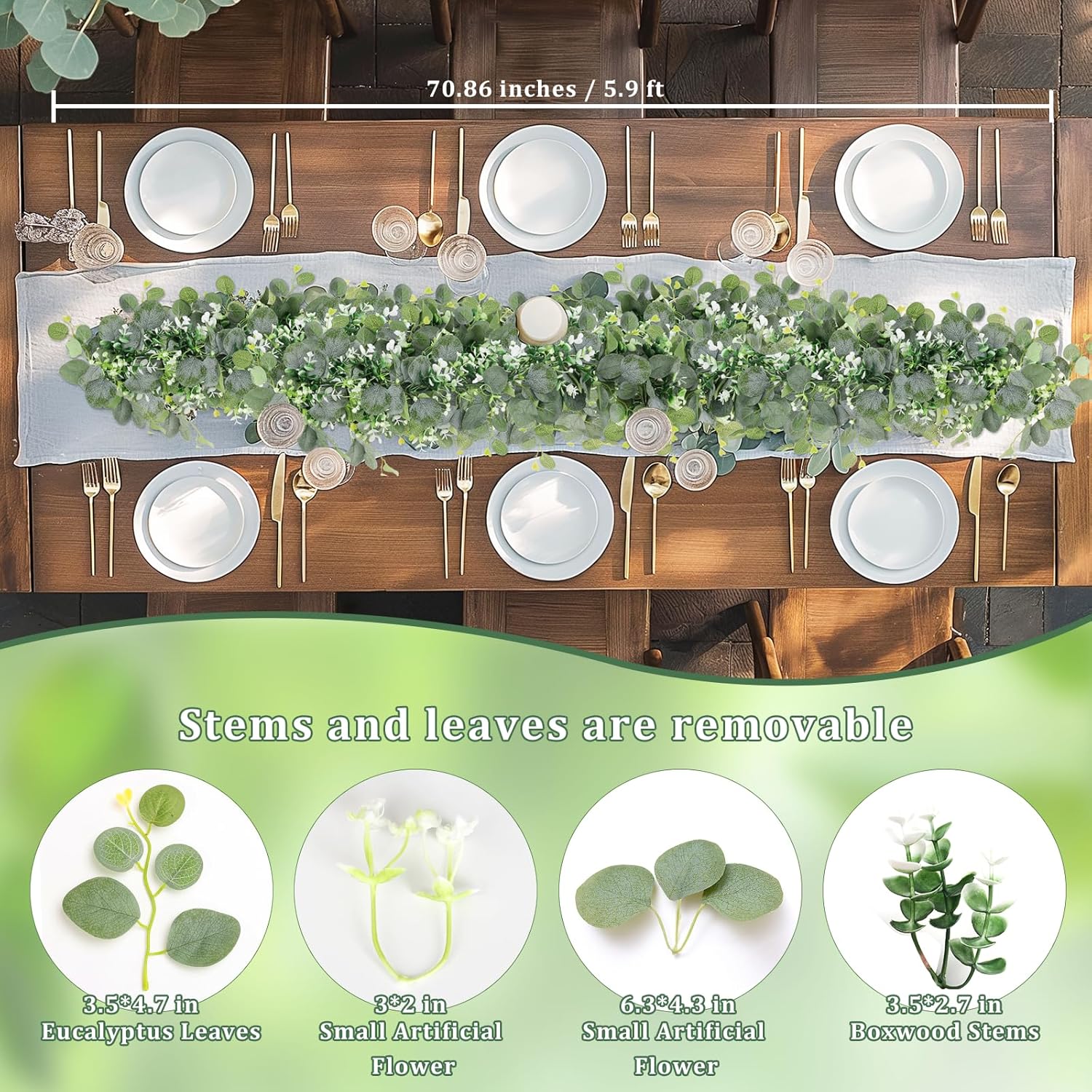 - šššš & ššŖš”š” & š½šššŖš©šššŖš”: Discover the beauty and vitality of life in our charming mix of eucalyptus garland! Our faux eucalyptus garlands mixed eucalyptus leaves and boxwood leaves together, which makes the whole vine look full, beautiful and filled with rich layers. The vibrant display of greenery garland interspersed with gentle white blooms adds a natural, elegant touch to any decor.