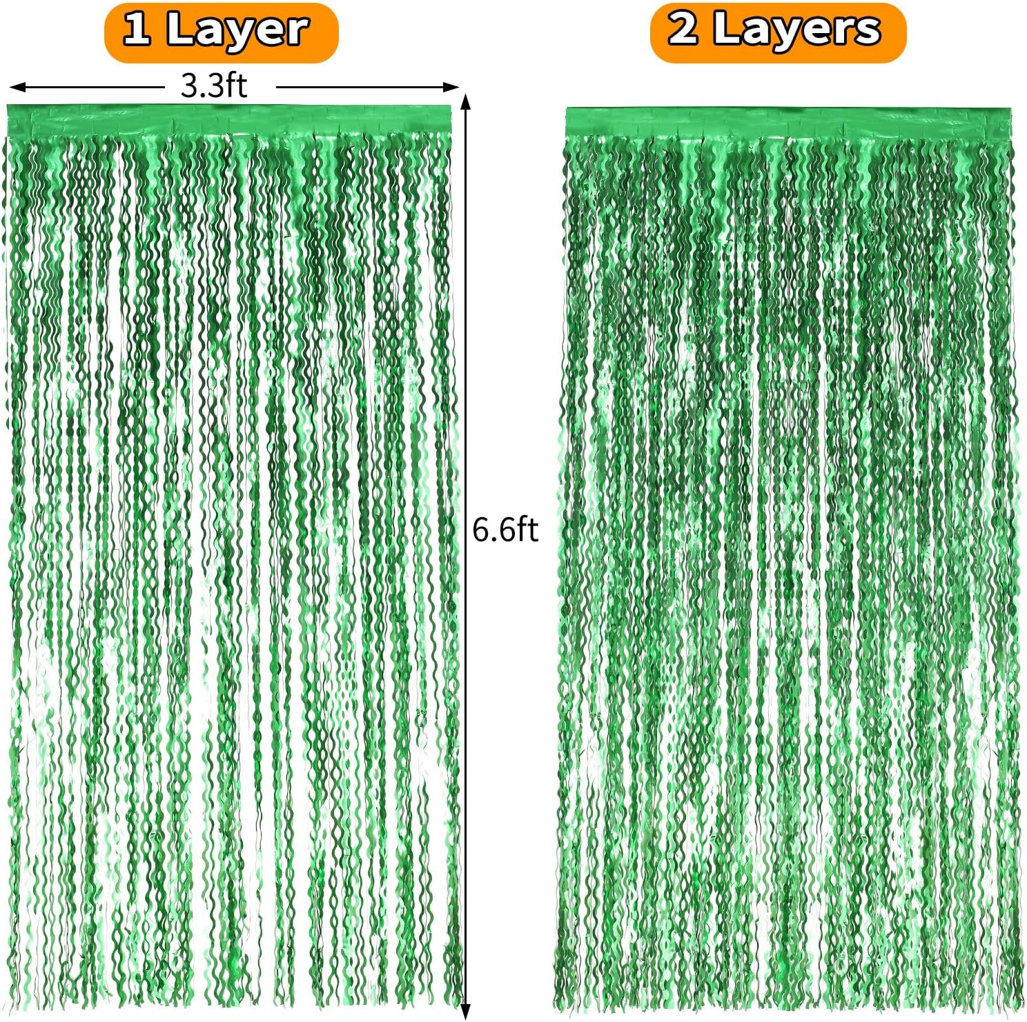 4Pcs Wavy Green Fringe Backdrop -3.3x6.6ft Green Streamer Foil Curtains for Jungle Party Decorations | St Patricks Day Decorations | Football Decorations | Xmas