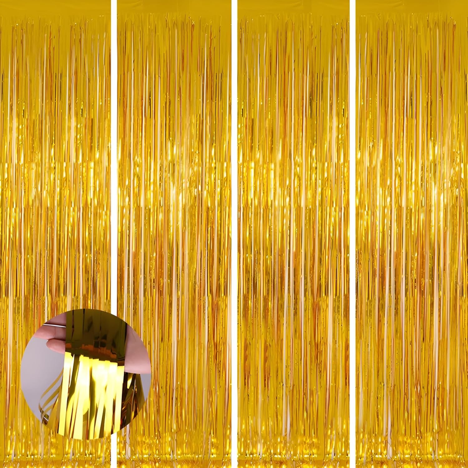 Keyali 4 Pack 3.3 * 8.3 ft Foil Curtain Metallic Tinsel Fringe Curtains Photo Booth Props Backdrop for Birthday Wedding Engagement Baby Shower Christmas Holiday Celebration Partyl,Gold