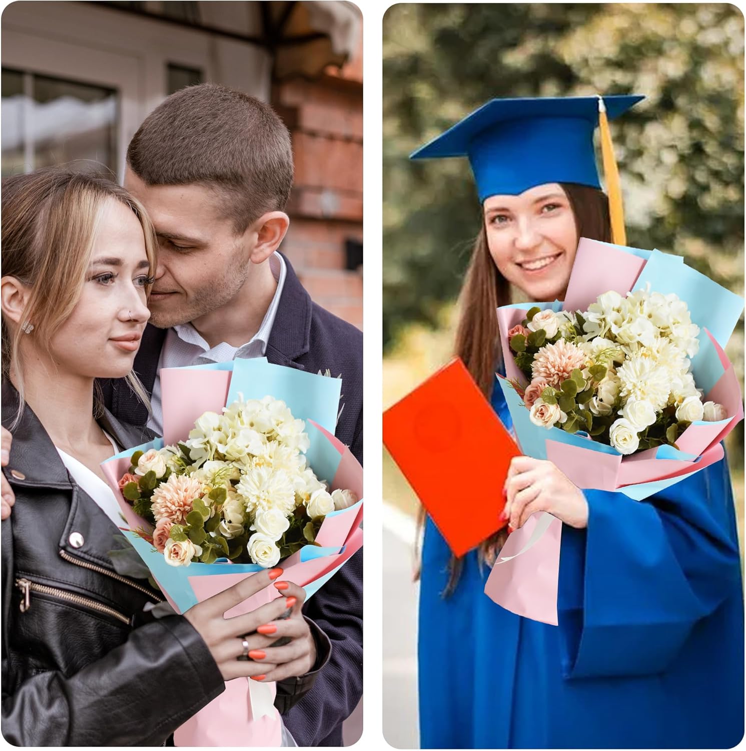 BEISHIDA 20Pcs Baby Blue and Baby Pink Double Sided Floral Wrapping Paper Matte Waterproof Flower Bouquet Wrapping Paper for Floral Wrap Florist Packing Supplies Valentine's Christmas Gift Wrapping