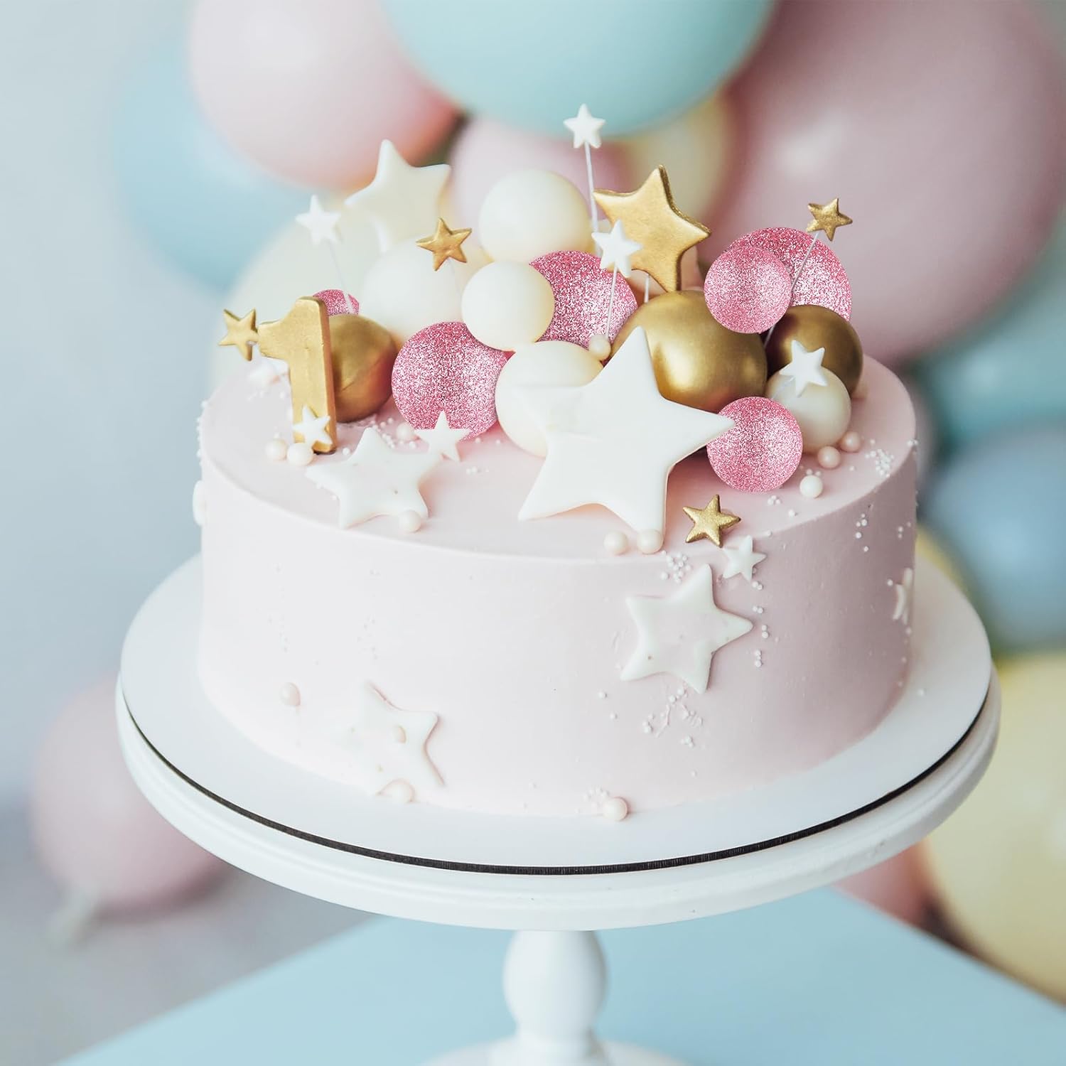 - Package includes: 20 pcs glitter pink ball cake decorations. The diameter of these ball cake toppers are 0.79 inch/ 2 cm, 0.98 inch/ 2.5 cm, 1.18 inches/ 3 cm, 1.57 inches/ 4 cm, 5 pieces of each size.
