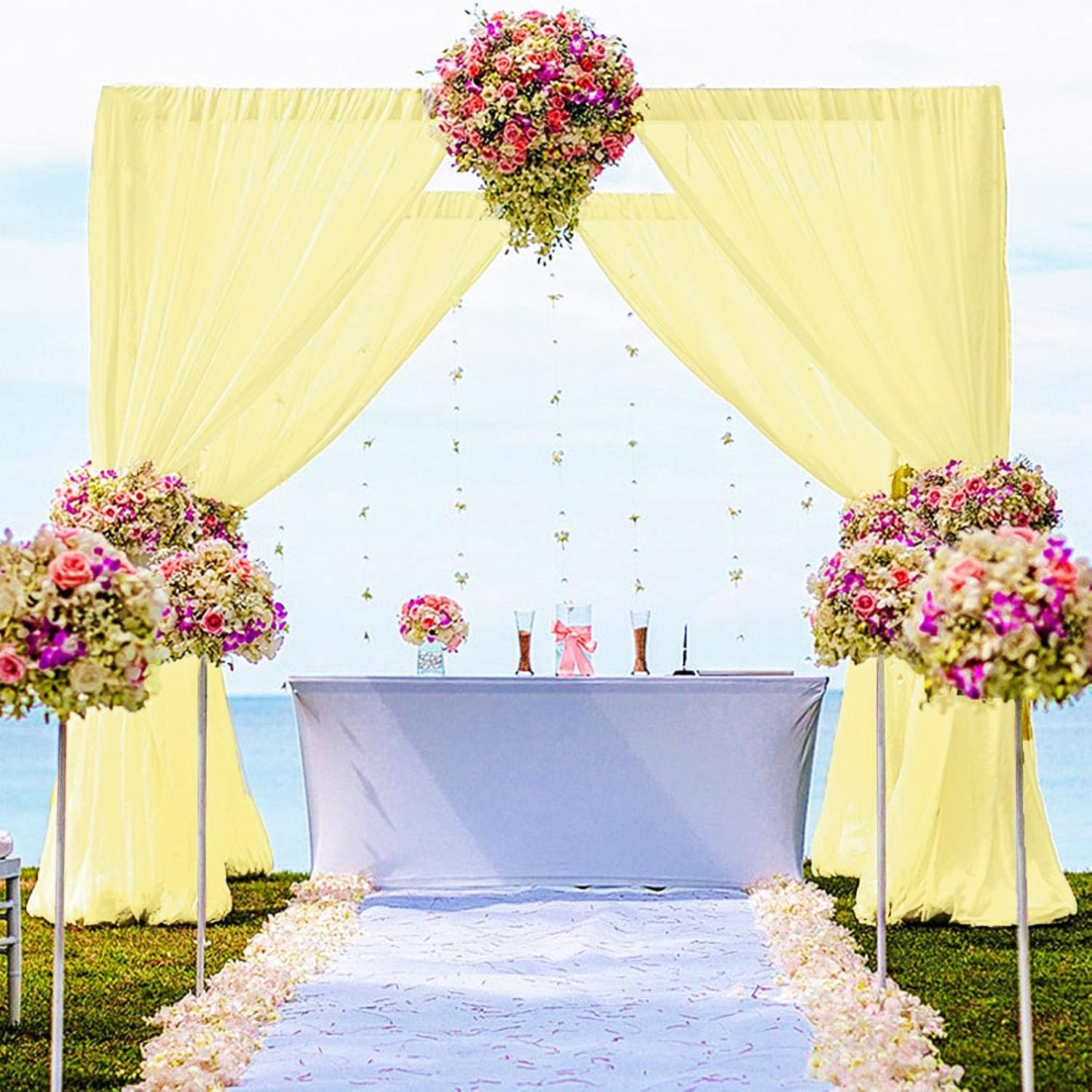 - ā SHEER CHIFFON CURTAINS :Includes 2 Panels Width 5ft (total width 10ft for 2 panels) chiffon backdrop curtain yellow color--Different electronic devices seeing the image colors will different . Please refer to the actual product for specific color.