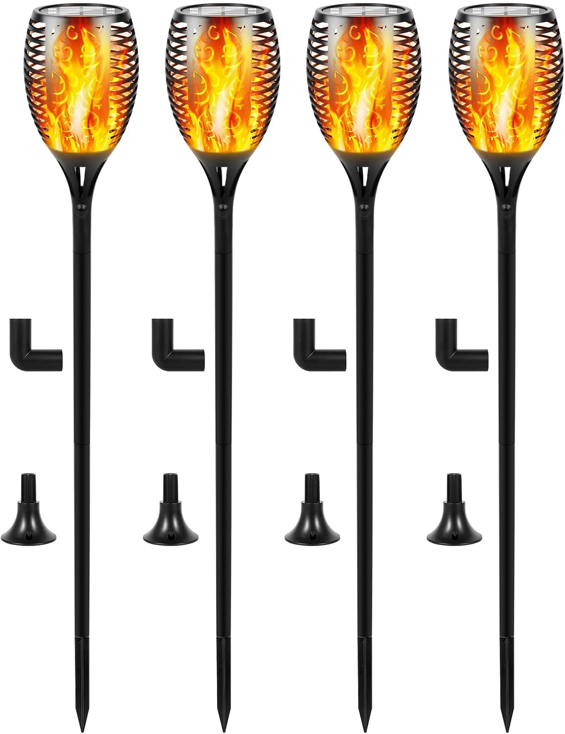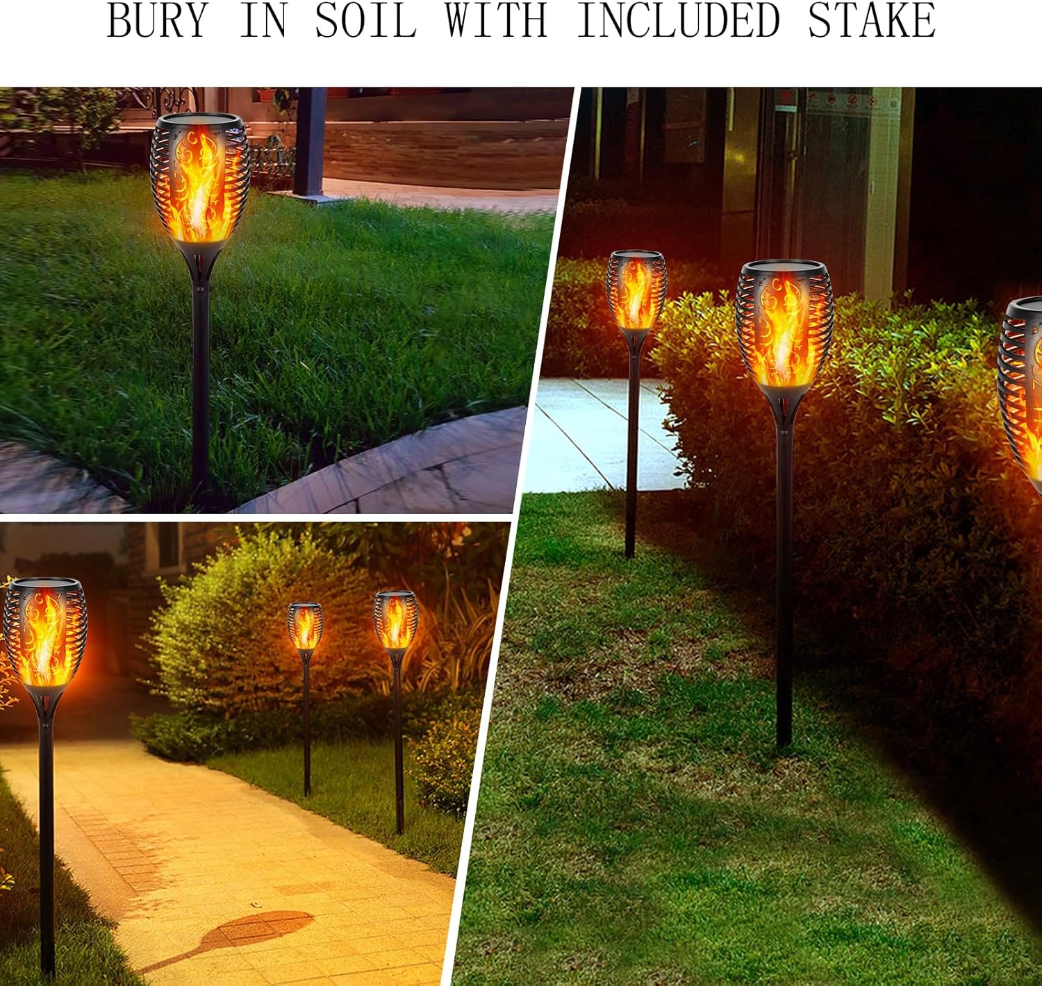 I-SHUNFA 96 LED Outdoor Waterproof Solar Torch Lights with 3 Modes—Flickering Flame, Fade Effect, or Full Brightness Automatic On/Off Landscape Decorations and Security Lights (4, Warm)