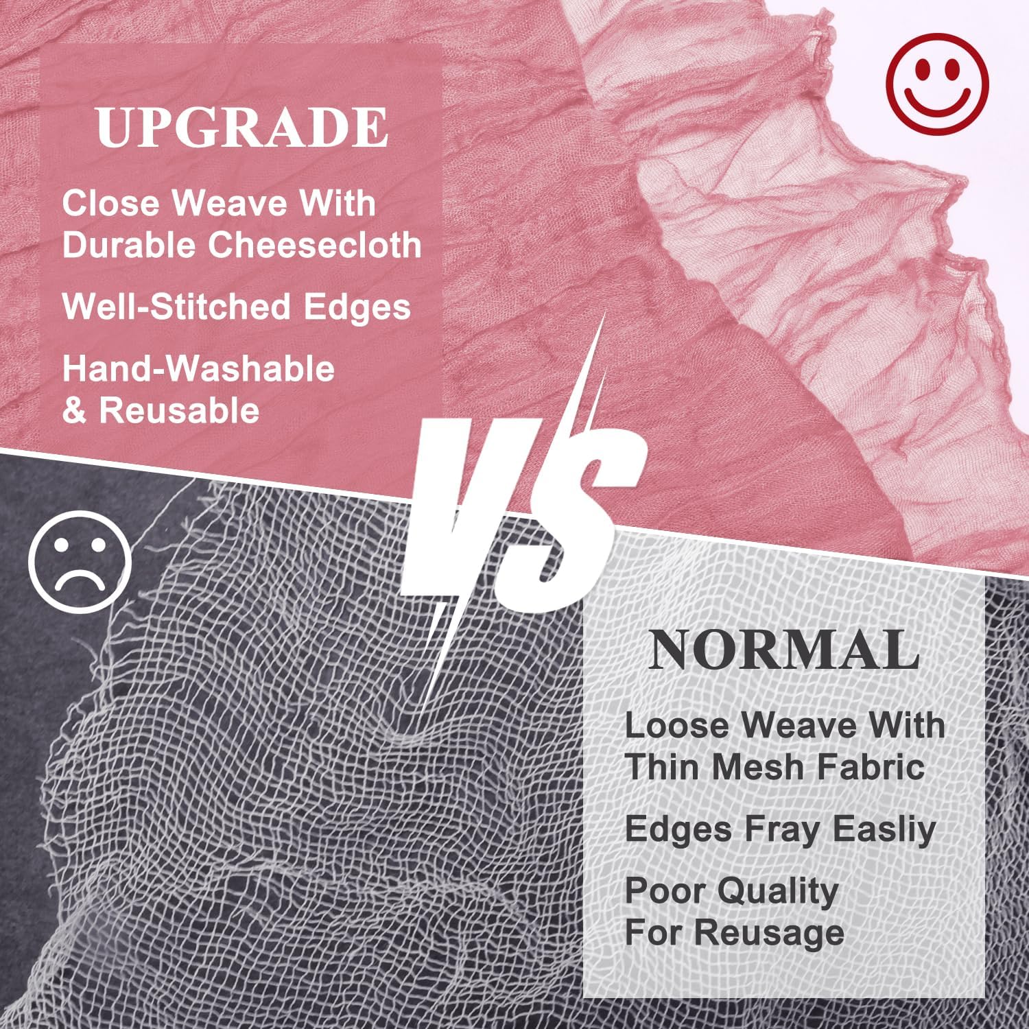 - 【Cheesecloth Table Runner】 Size: 35" W x 120" L. You will get 2 pieces 10FT length cheesecloth table runner. The sheer rustic table runner is long enough to span a large table and drape gracefully across the table. It will gently sway in the wind, adding a romantic atmosphere to your occasion. These eye-catching gauze table runners are ideal for arranging an elegant, stylish tablescape.