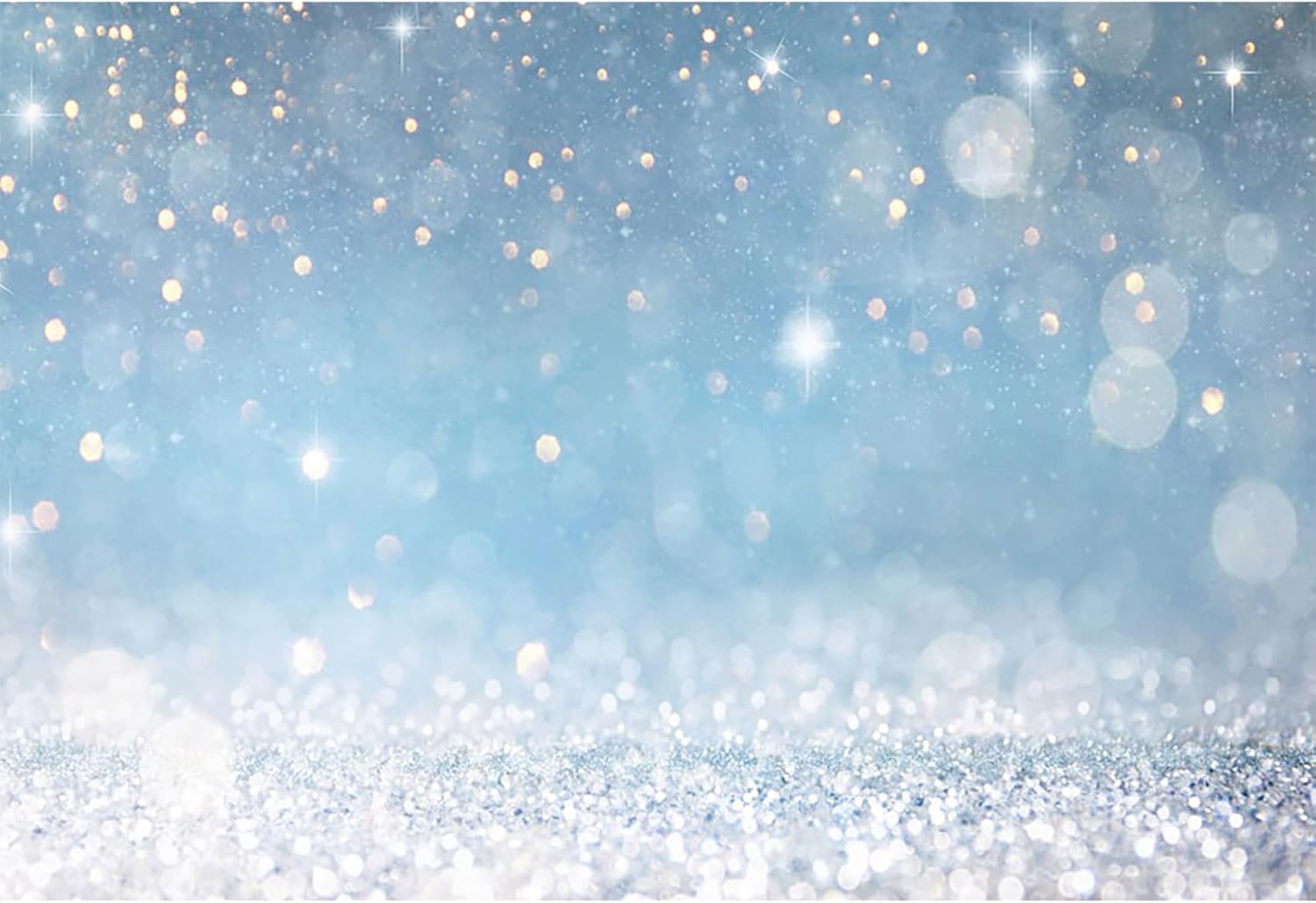 6x4ft Blue Bokeh (Not Glitter) Backdrops Birthday Party Abstract Golden Sparkling Spots Photography Background Baby Shower Wedding Prom Graduation Party Bokeh Decor Banner Photoshoot Props