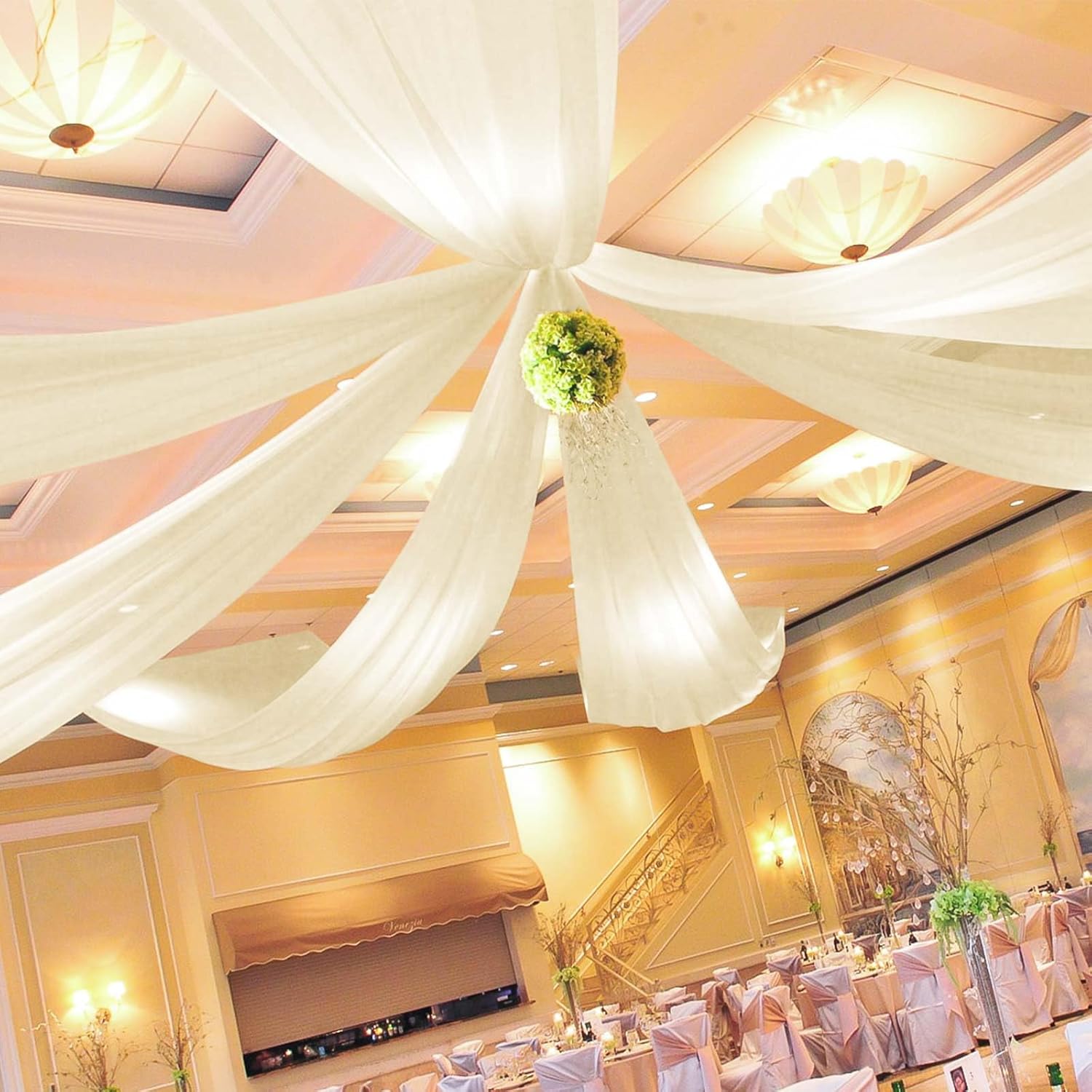 - 👑【Package Includes】You can get 6 panels Ivory wedding Ceiling Drapes (without hanging pieces). Each wedding extra long curtain measure for 5 feet width X 10 feet length. Enough quantity to meet your needs for decorating weddings, parties and decorating your wedding with romantic Ceiling Drapes will definitely bring you unexpected surprises.